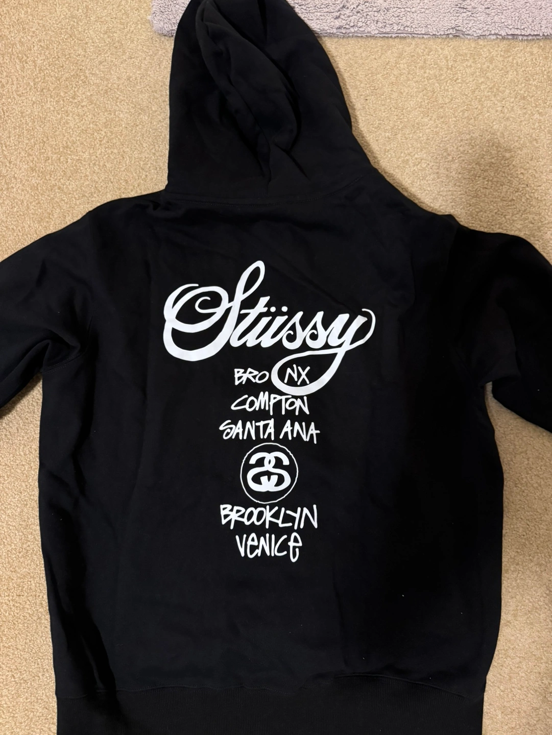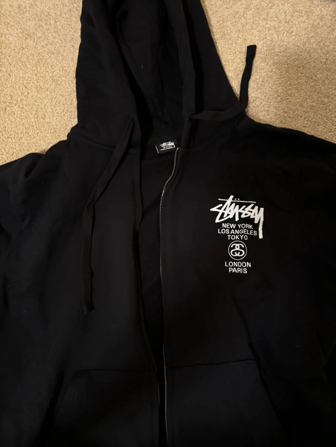 Black Stussy zip-up hoodie ( World Tour ) , Size M , Brand New got as a gift from a friend , limited world tour zip up bought in Los Angeles , retail $344