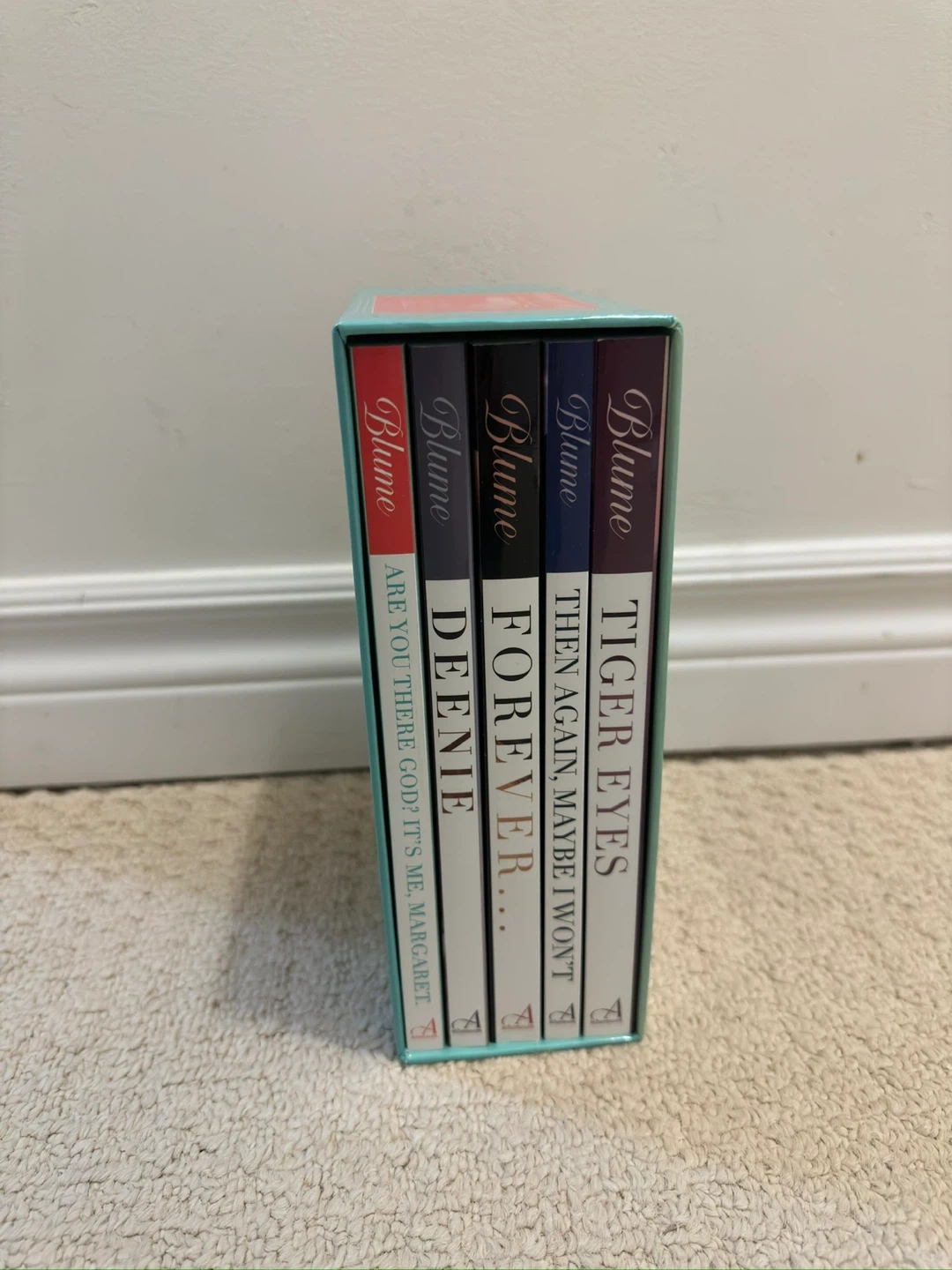 Selling a complete Judy Blume Teen Collection! This set includes five beloved books by the iconic author. Perfect for any young adult reader or collector. Titles include: - Are You There God? It's Me, Margaret - Deenie - Forever - Then Again, Maybe I Won't - Tiger Eyes