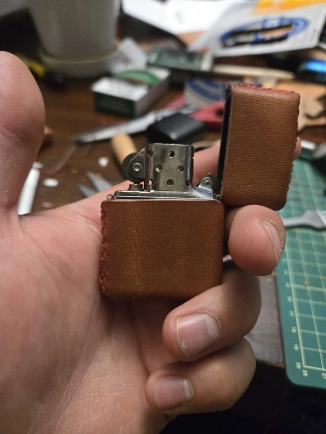 Hand crafted leather lighter covers for Zippo and Bic lighters. Made with high-quality veg-tanned leather. Available in multiple colors for dyes and threads. Each piece is cut, dyed, and stitched by hand. Tooling and laser engraving can be added for a personalized look. Large Bic lighter coozies start at $25 up to $45 depending on style. Zippo covers are $50, including dye and thread color. Tooling, border stamping, and laser engraving are extra, with prices varying based on detail and complexity. Please contact me for information and pricing. I also create other custom leather items like wallets, slings, belts, and sheaths.