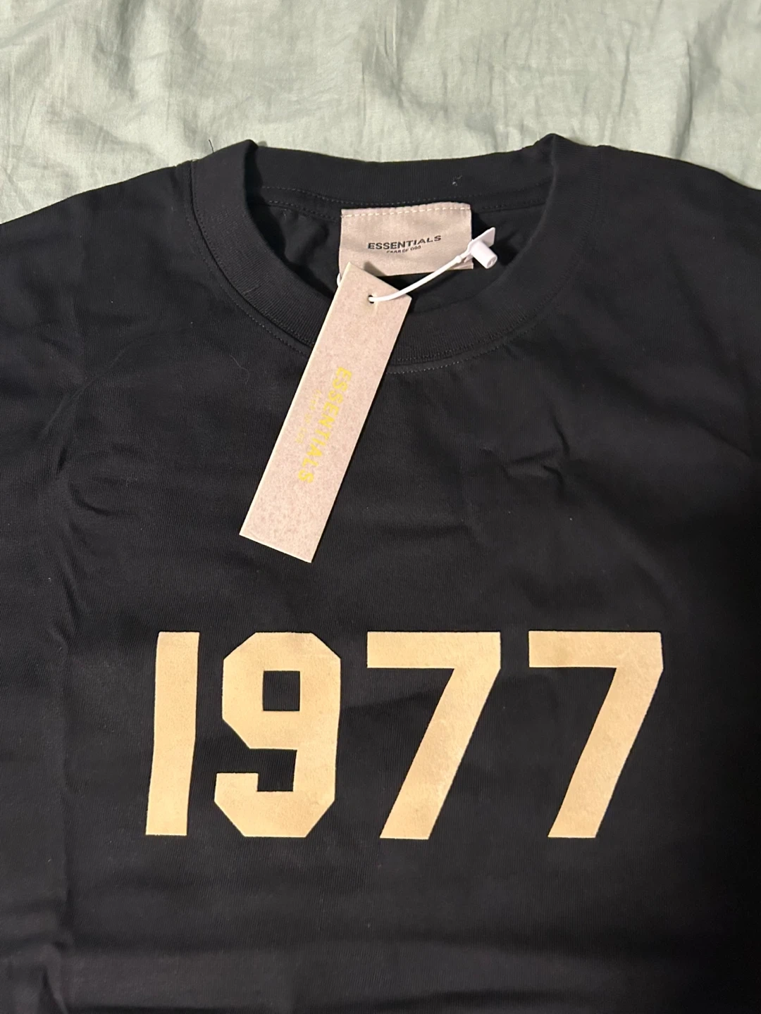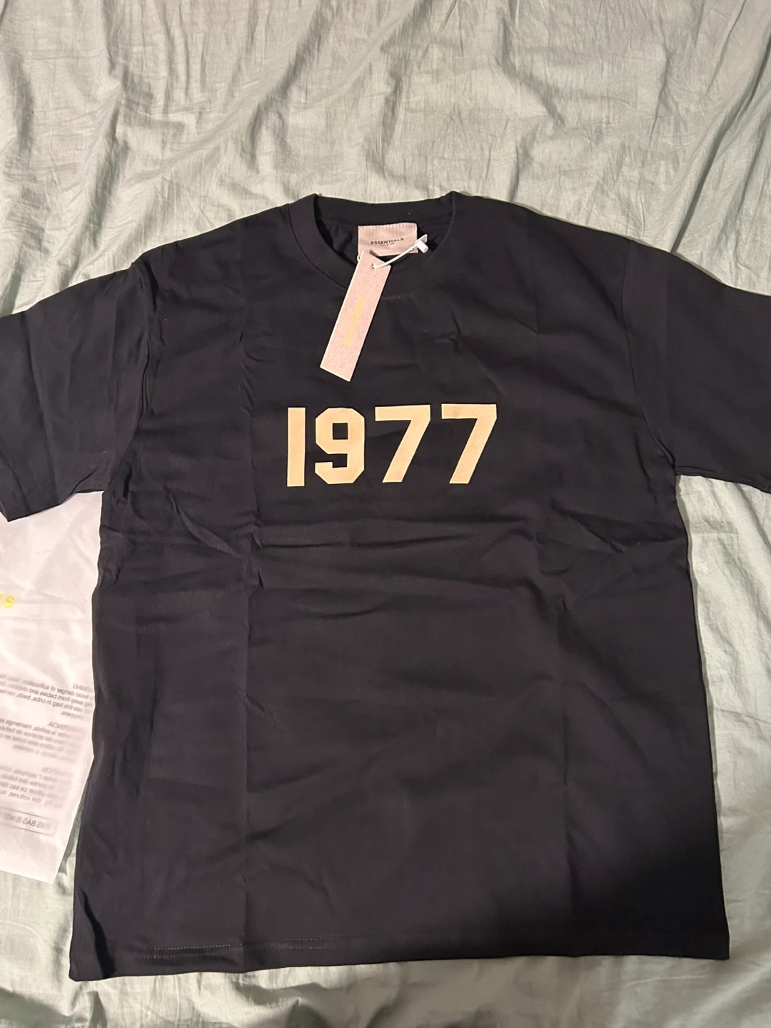 Black Essentials Fear of God t-shirt with "1977" graphic. Cotton material. Includes tags. Super comfy and stylish for the summer