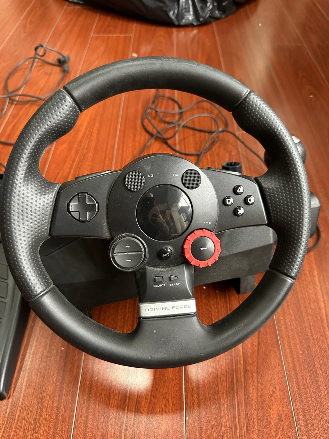 This Logitech Driving Force steering wheel and pedal set is designed for immersive racing simulation. It's made of durable plastic and features a comfortable grip. Great for enhancing your gaming experience!