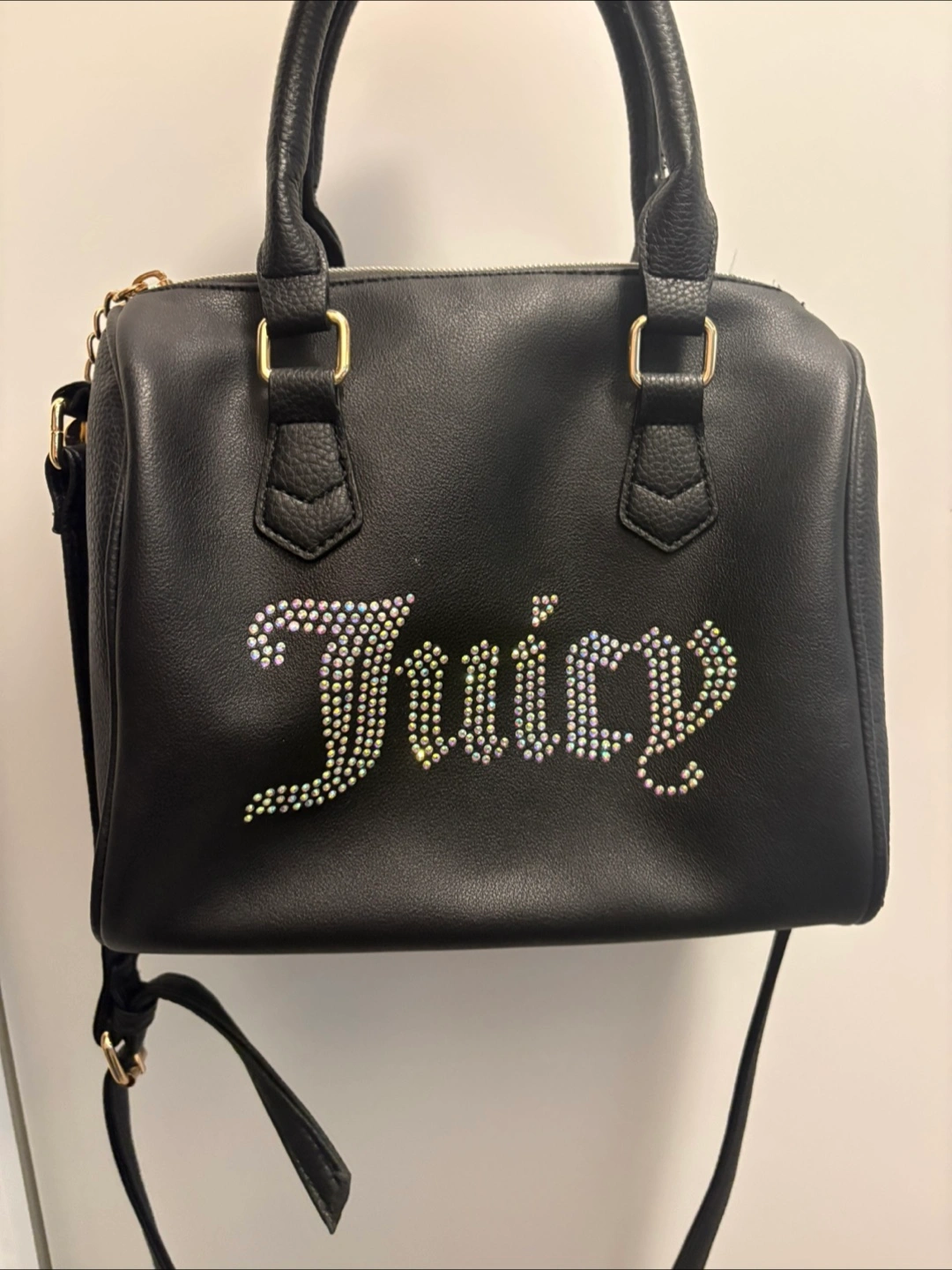 Selling a cute Juicy Couture satchel bag! It's black with the Juicy logo in rhinestones. Great for adding a bit of sparkle to your outfit!
