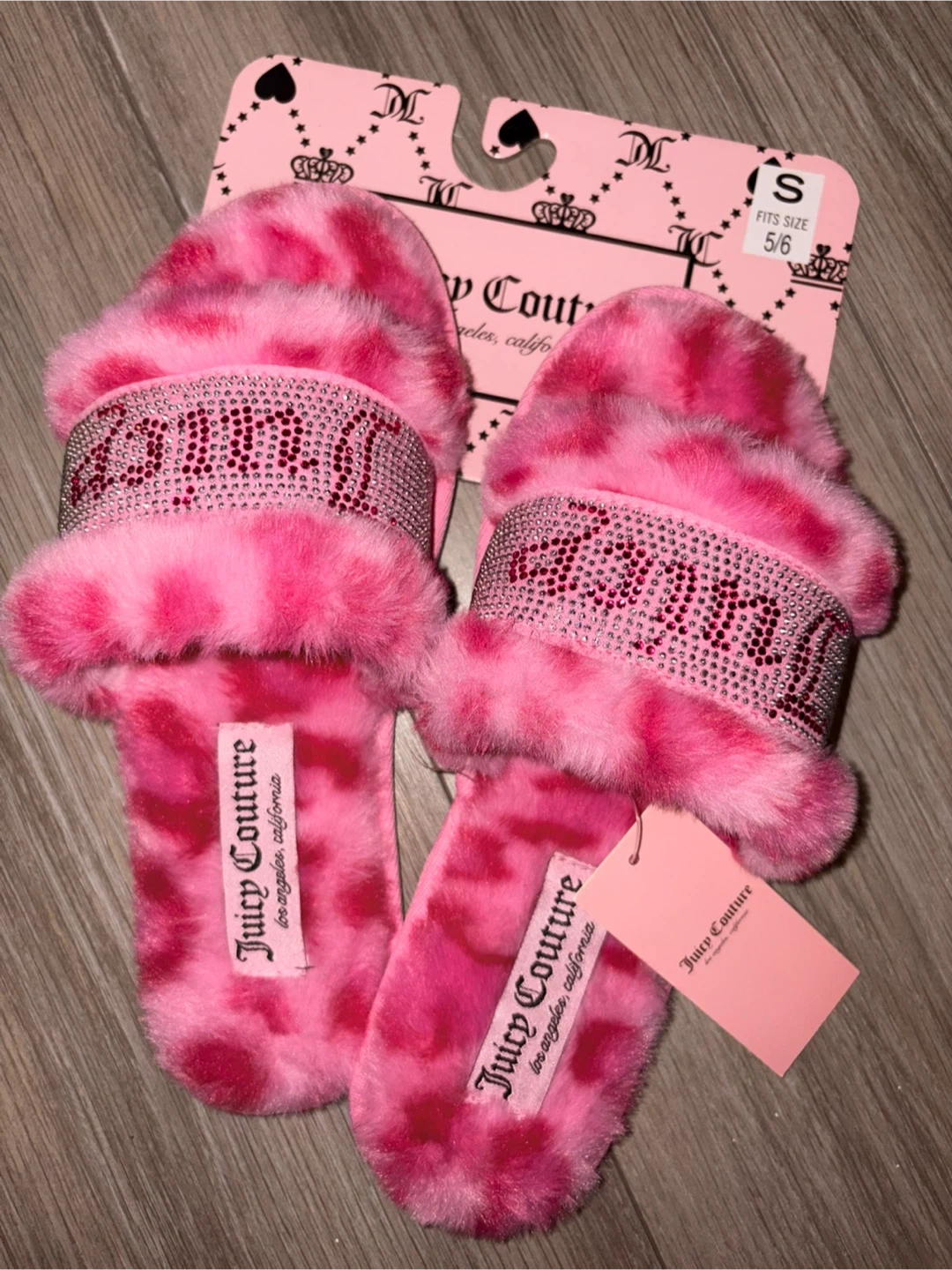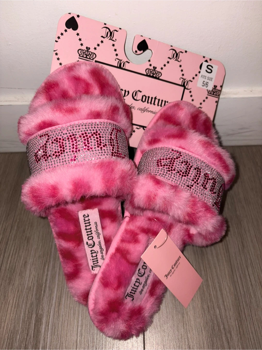 23Brand new Juicy Couture pink fuzzy slippers! They are a size 5/6 and would be perfect for lounging around the house. Super soft and comfy! Pick up is in willoughby. Please bring cash.