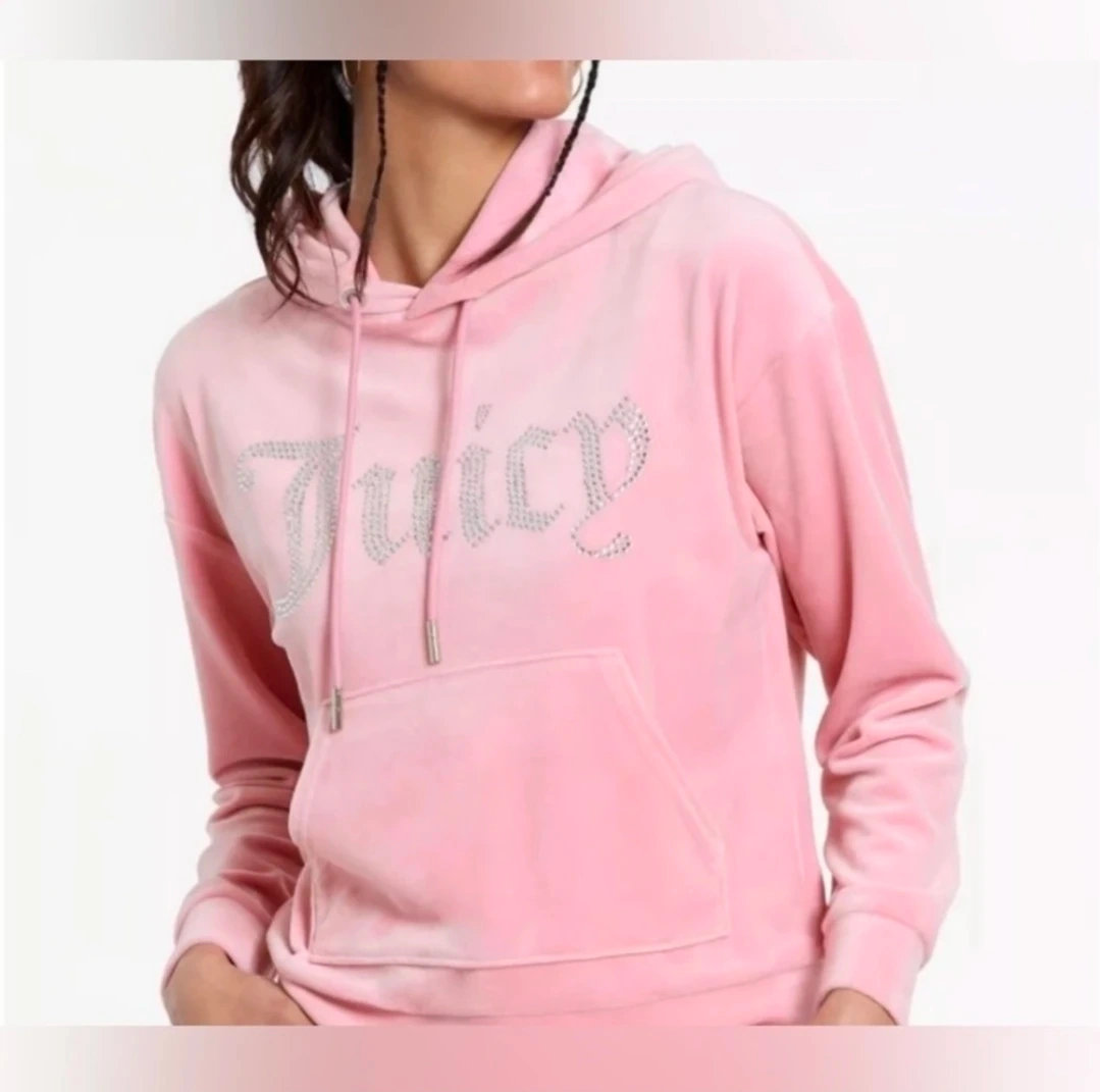 125Selling a cute Juicy Couture hoodie! It's a lovely pink velour material and has the word "Juicy" spelled out in rhinestones. Perfect for adding a bit of sparkle to your wardrobe! Nwot size small