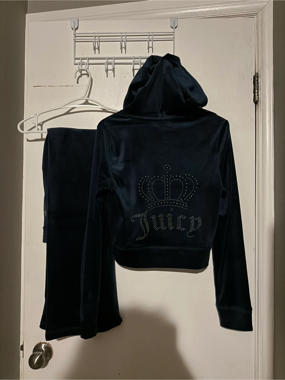 Size women’s medium and new with tags! The set includes a hoodie and pants. The iconic Juicy logo is on the back of the hoodie and pants. Must pick up and no try ons