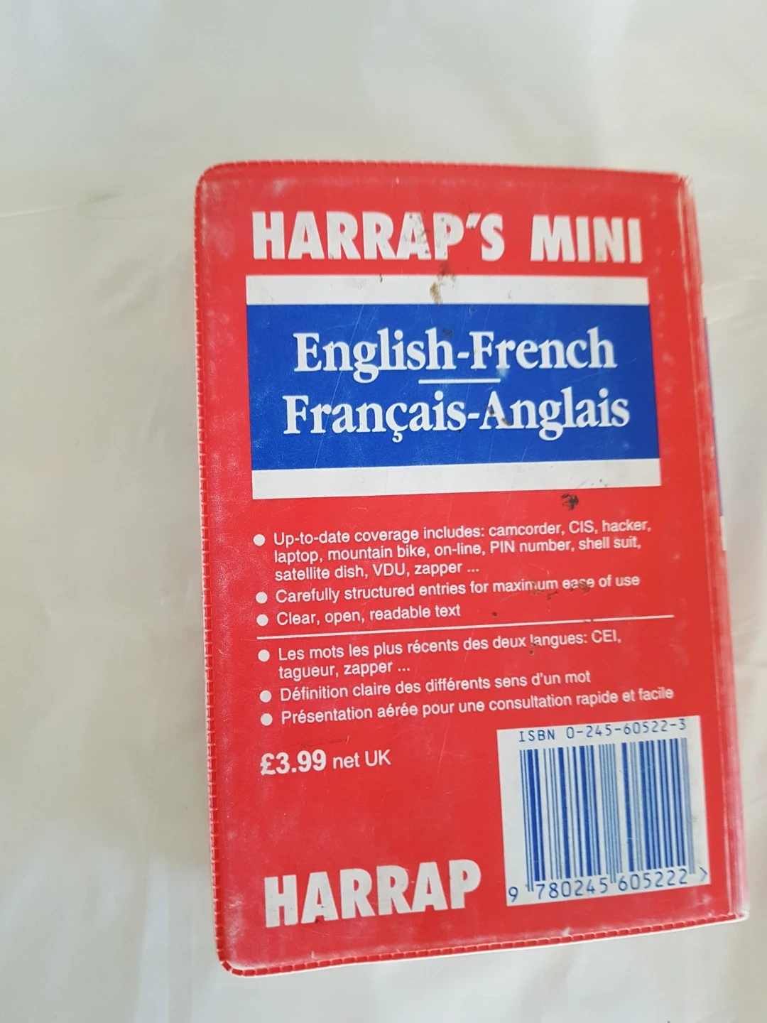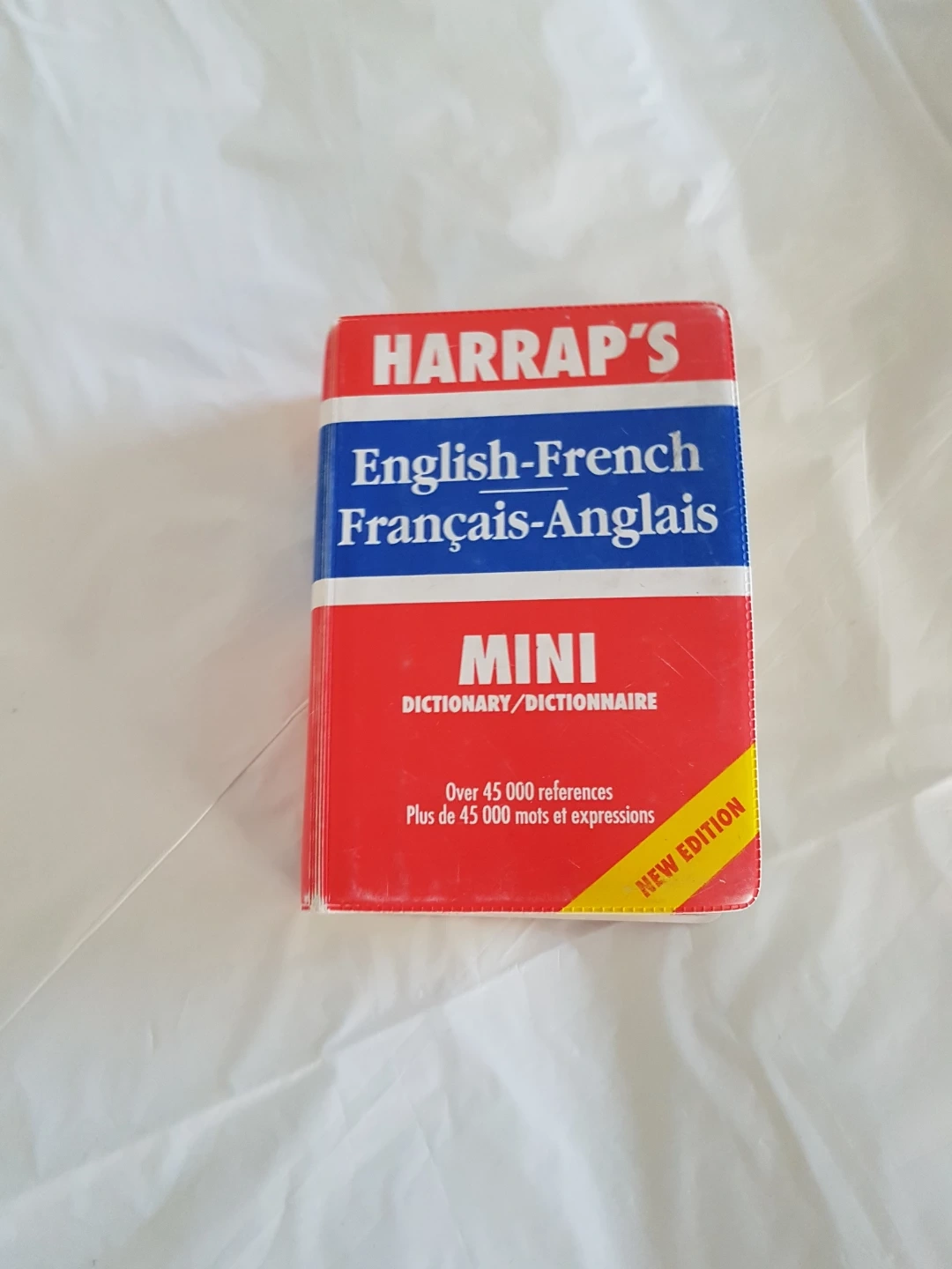 This is the Harrap's Mini English-French Français-Anglais dictionary. It's a new edition with over 45,000 references. Up-to-date coverage includes terms like camcorder, CIS, hacker, laptop, and PIN number.