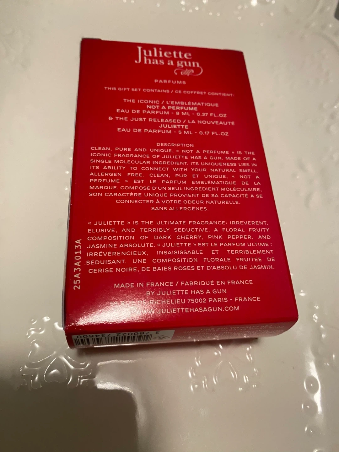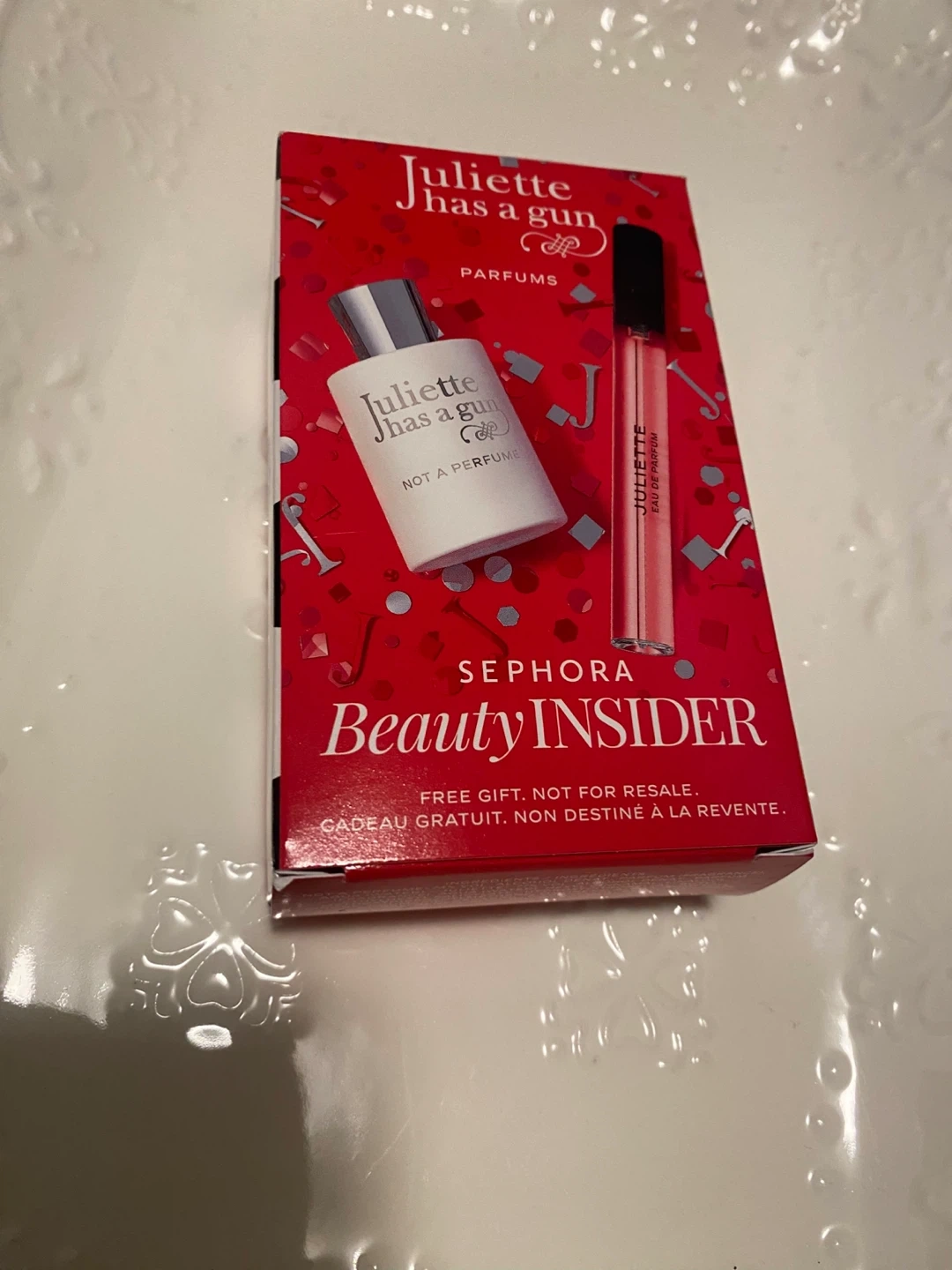 Selling a Juliette Has a Gun perfume gift set, by Sephora Beauty Insider. The set contains: - La Nouveaute Juliette Eau de parfum 5 ml - 0.17 FL.OZ - The Iconic/ L'emblematique Eau de parfum - 8 ml - 0.27 FL.OZ Cash only