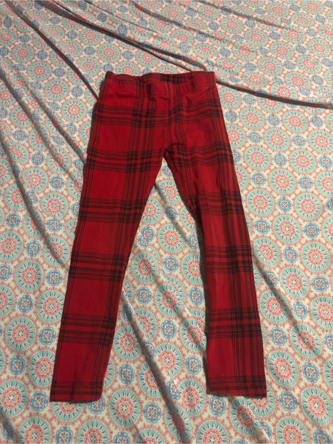 George! Kids Red Plaid Leggings Size 5
