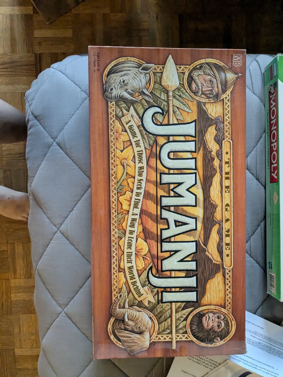 10Selling a used copy of Jumanji The Game by Milton Bradley! It's a game for those who seek to find a way to leave their world behind. Suitable for 2 to 4 players.