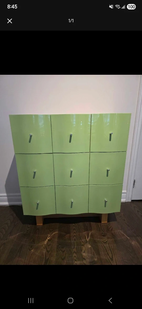 Here's a lovely green dresser with nine drawers! It would look great in any room needing some extra storage