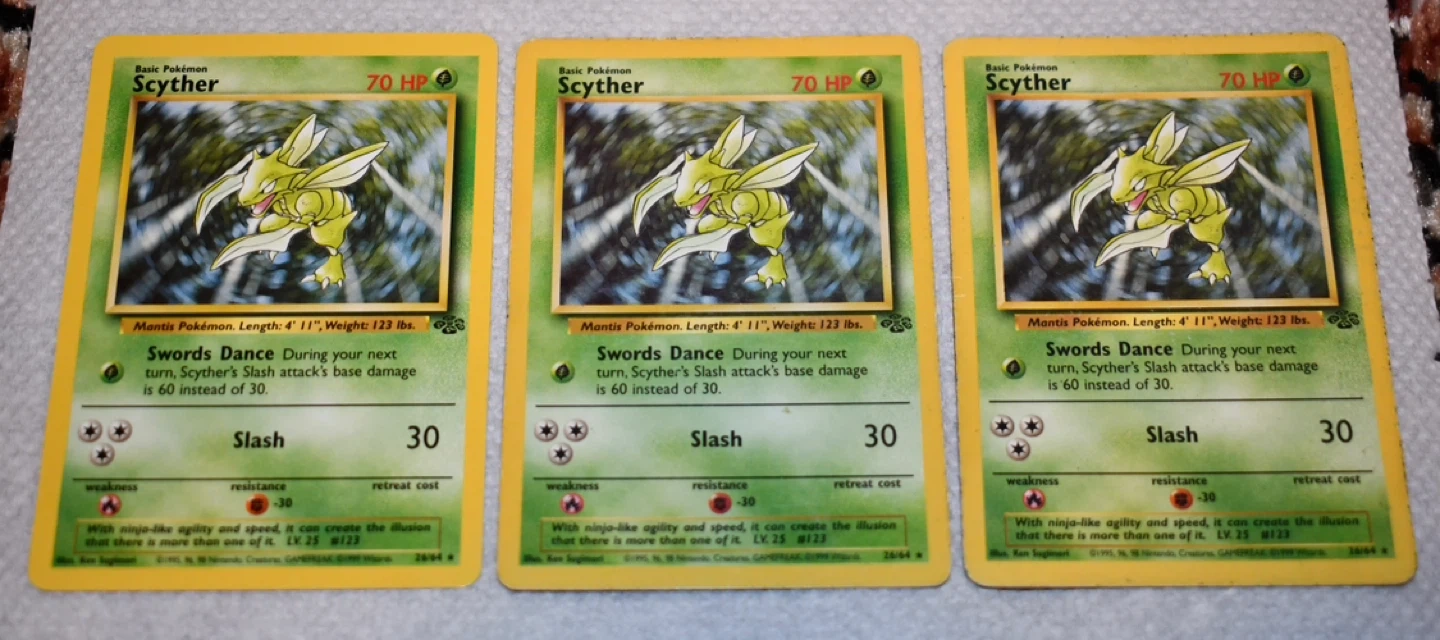 15$15 for NM (left), $10 each for others (MP) Pokemon 26/64 Message if interested in more vintage cards, have a good selection of non-holo cards for sale.
