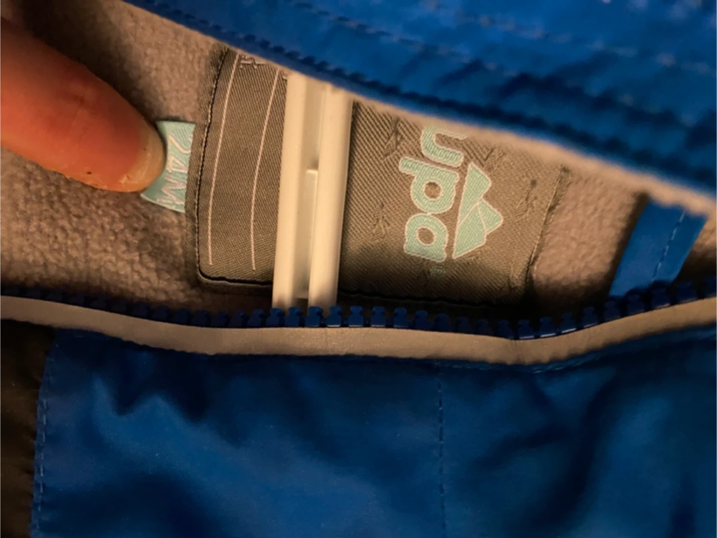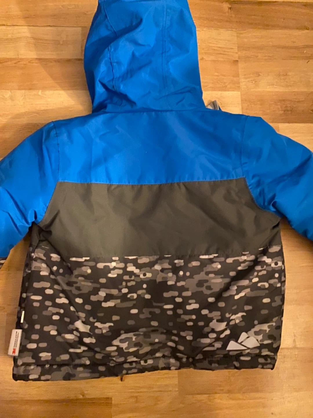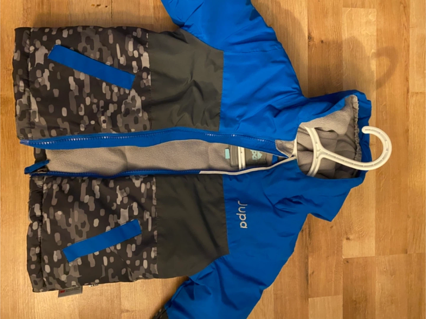 Selling a gently used Jupa winter jacket in size 24M! It's a stylish blue and grey colour block design with a camo-like pattern on the bottom. Perfect for keeping your little one warm and cozy this winter season