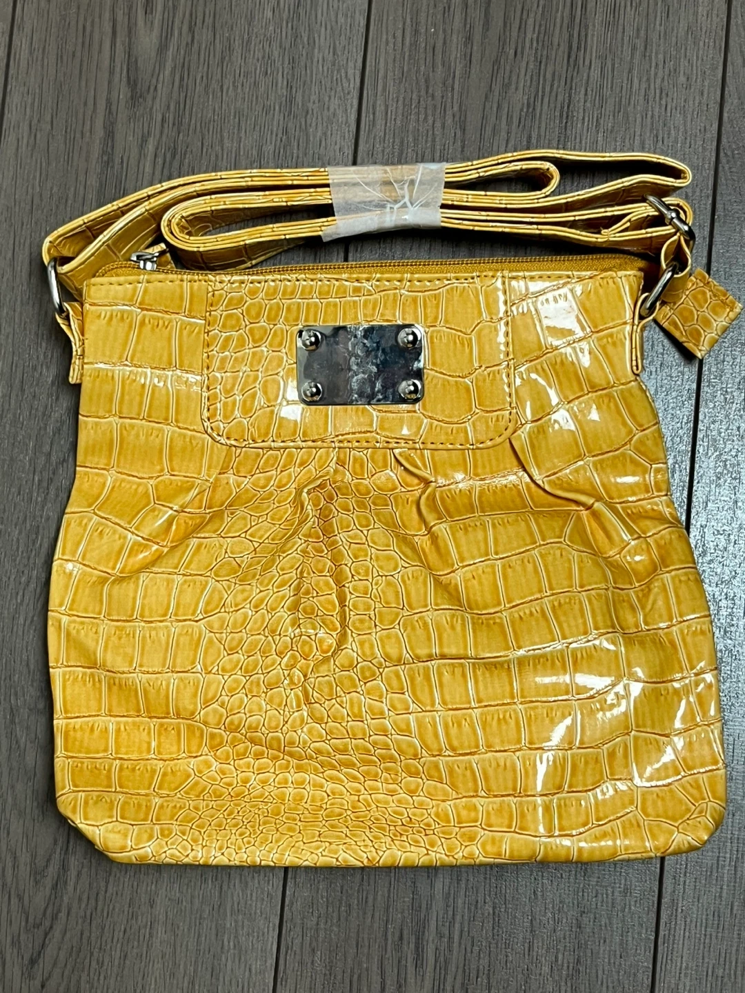 Looking to sell this stylish yellow crossbody bag! It features a unique croc-embossed pattern and a convenient crossbody strap. Perfect for adding a pop of colour to any outfit!