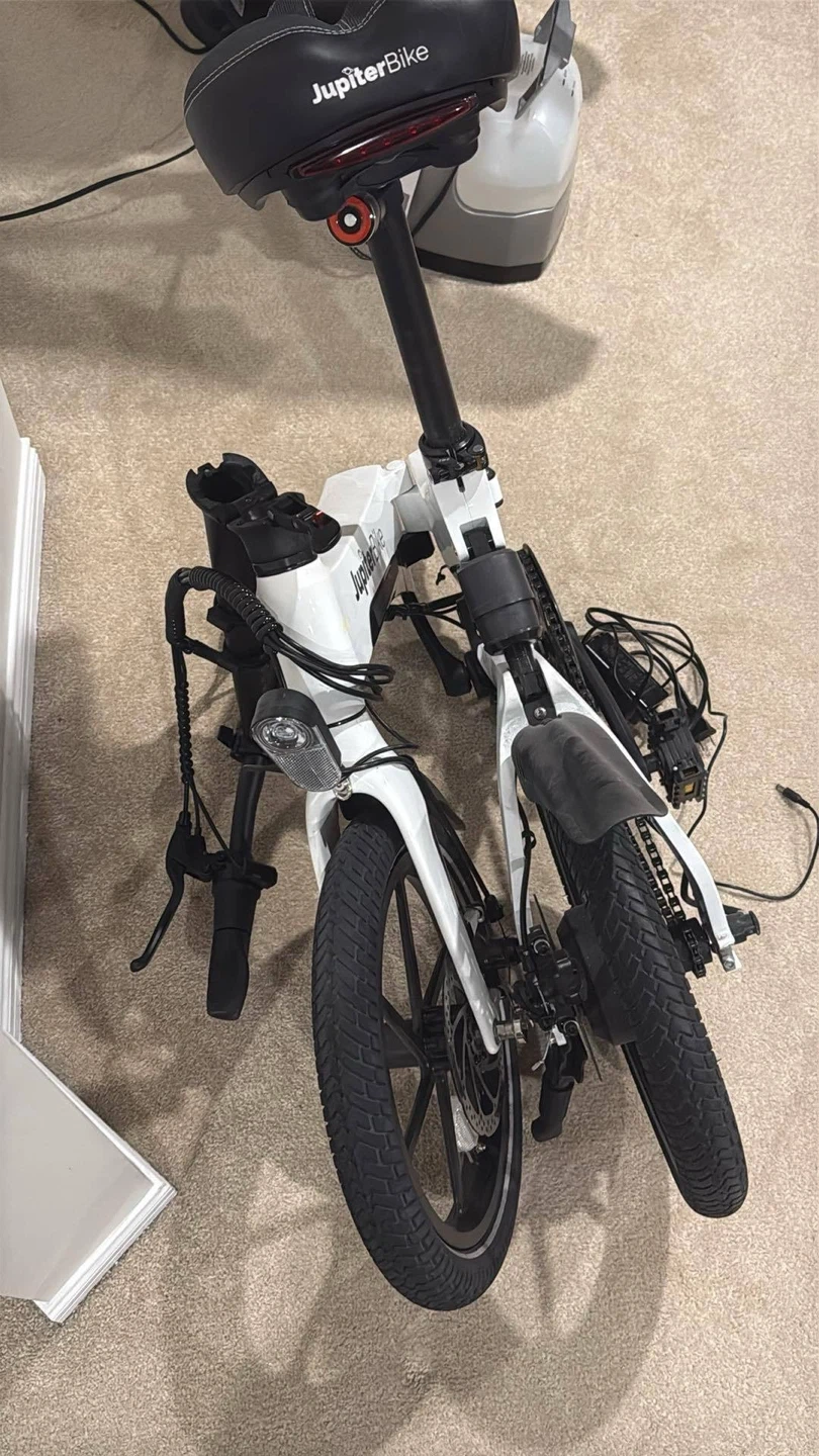 60Selling a JupiterBike folding electric bike in great shape! It's perfect for commuting or just getting around town. It folds up easily for storage and transport, making it super convenient. The bike is white and ready for a new owner to enjoy!