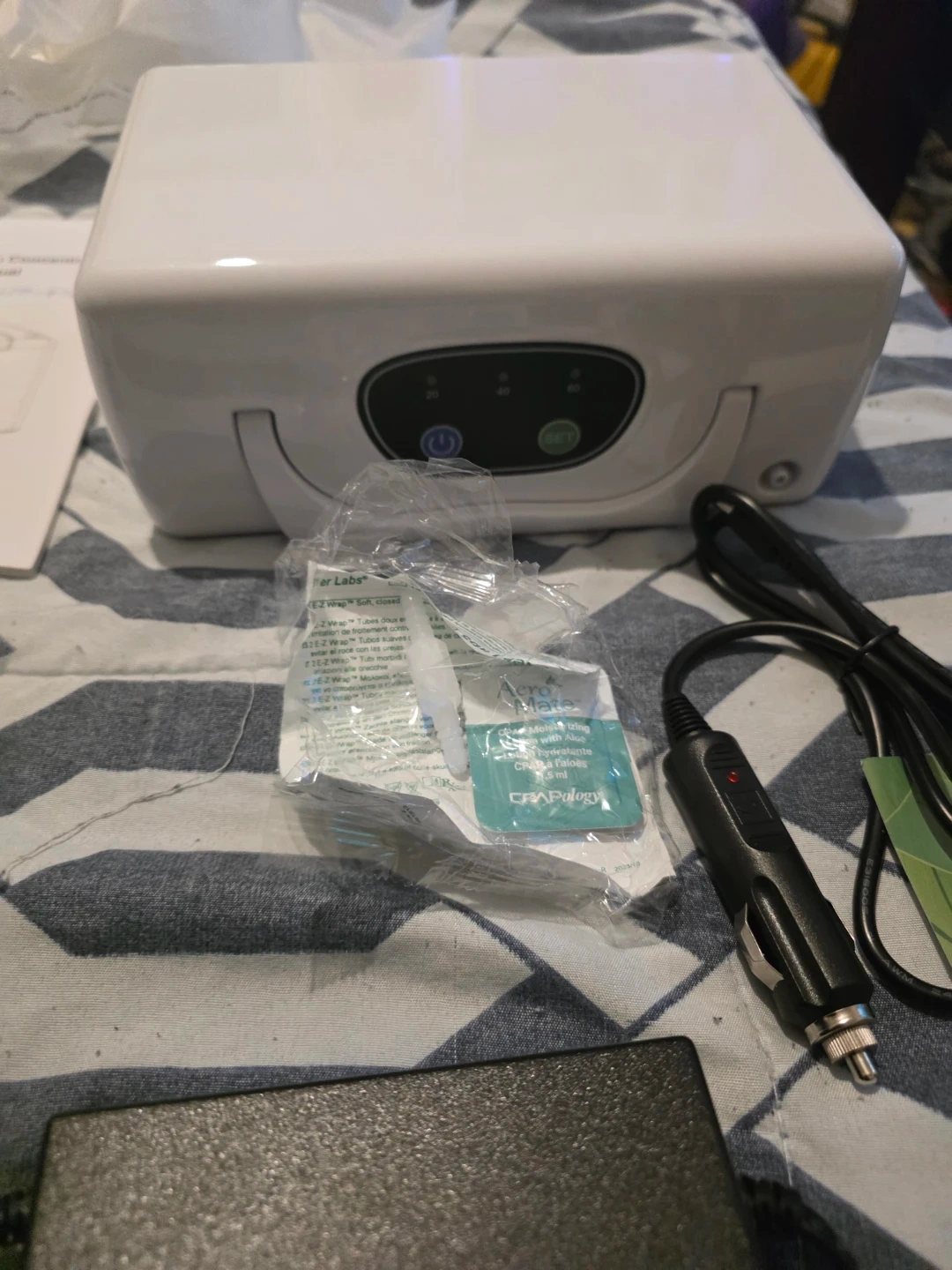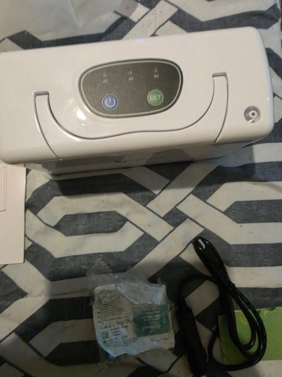 Varon portable oxygen concentrator NT-5. It's white and comes with a user's manual and power adapter. This concentrator is useful for individuals needing supplemental oxygen.