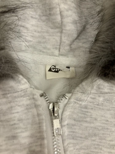 White Y2k Fur Lined Zip up Hoodie Vintage