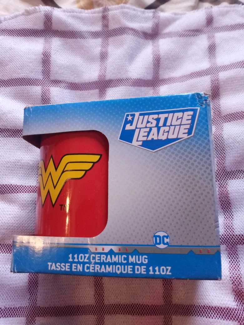 11 Oz mug, reg with Wonder Woman logo. New in box, though box has a few dents.
