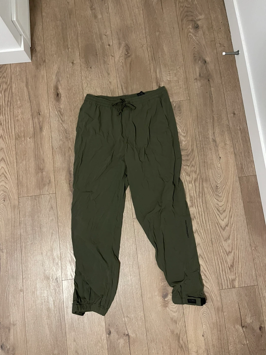 These ACG cargo pants come in a stylish olive green colour. They feature a drawstring waist and elasticated cuffs for a comfortable fit. Perfect for outdoor adventures or casual wear!