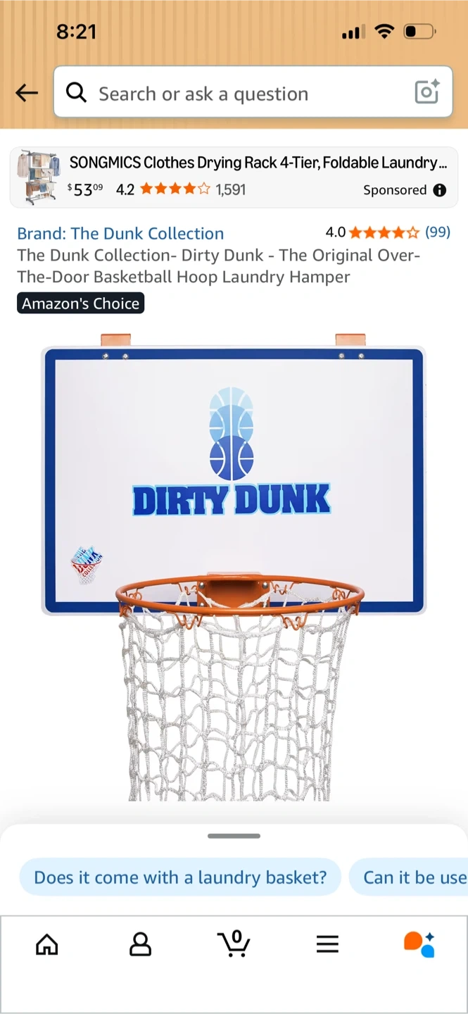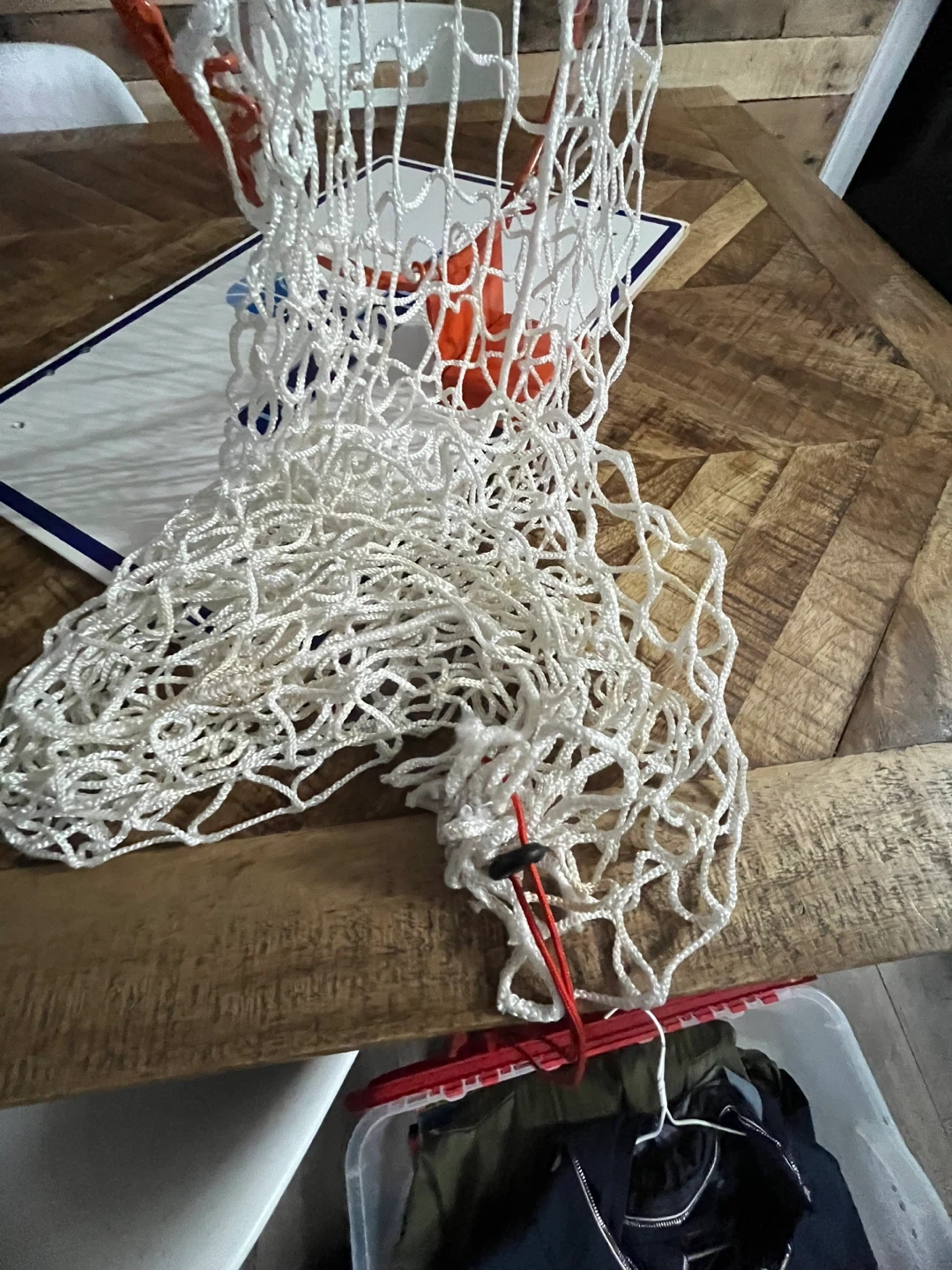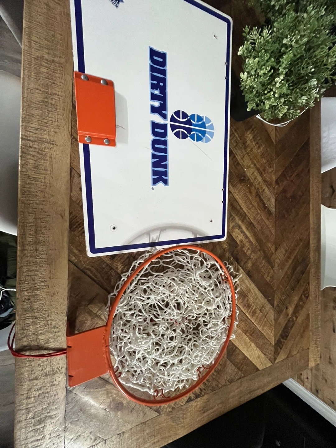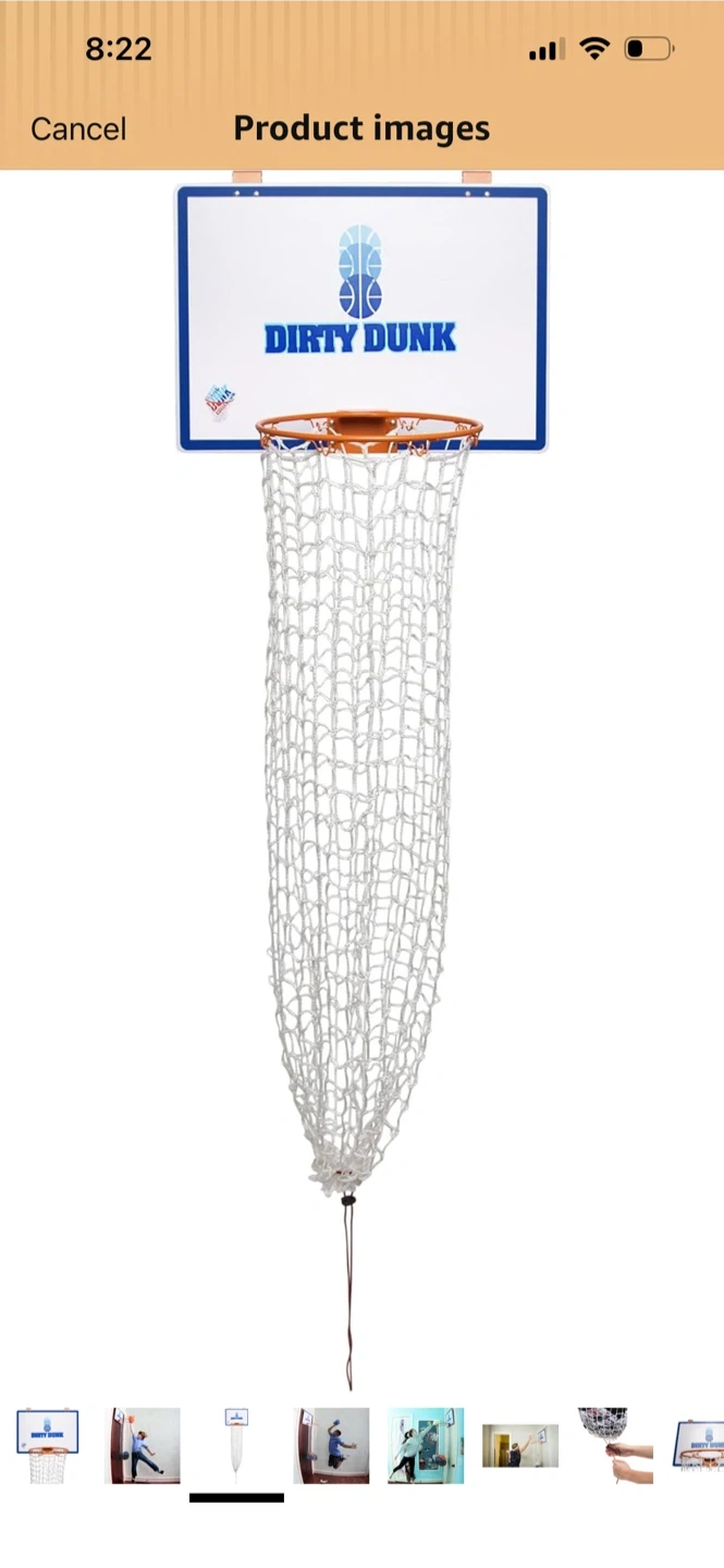 This is a Dirty Dunk basketball hoop and net laundry hamper. Mounts onto wall or door and throw in the dirty laundry.