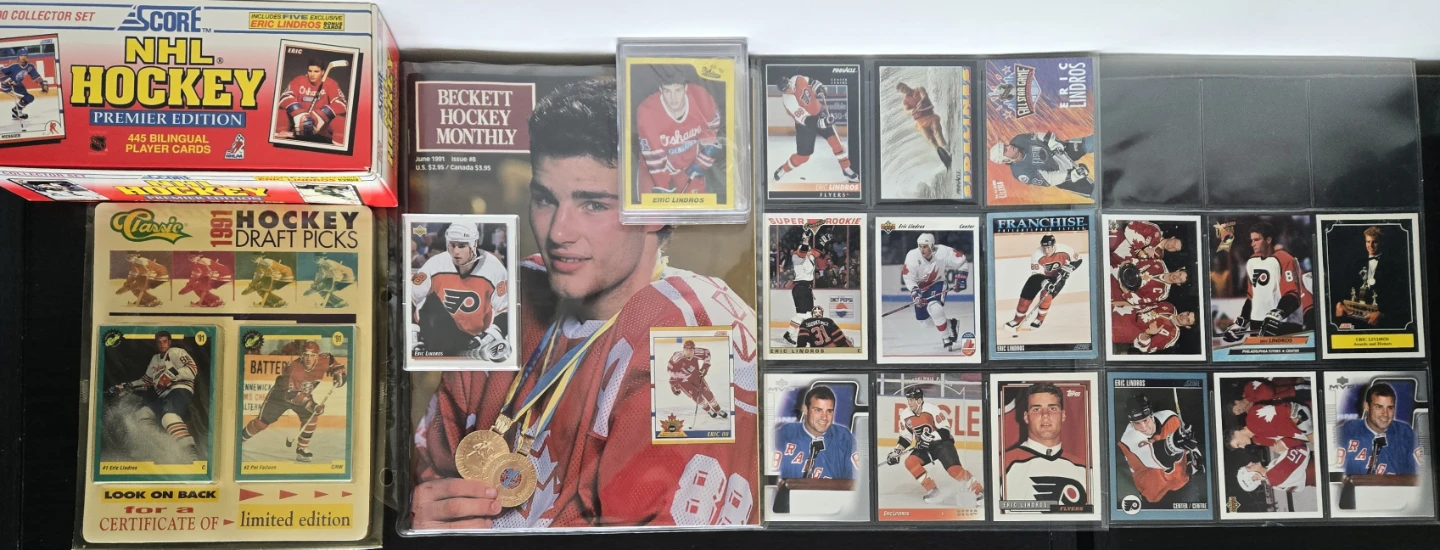 Eric Lindros Hockey Card Collection and Beckett Monthly Magazine