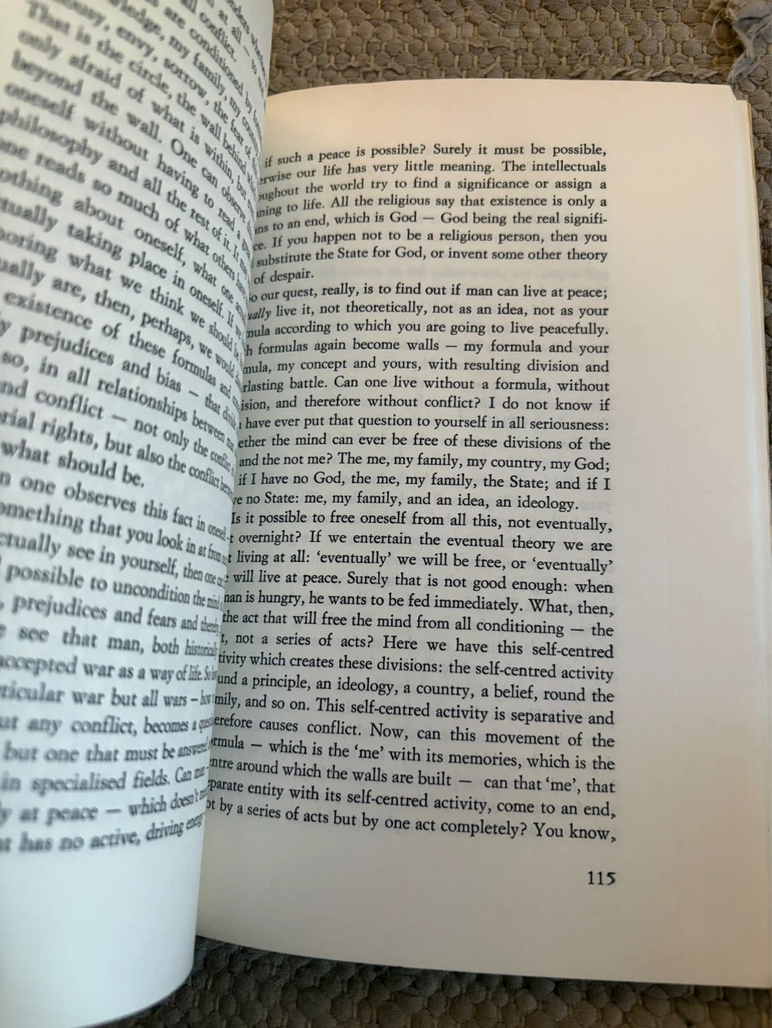 This is a paperback copy of "You Are The World" by J. Krishnamurti. It's a philosophical text exploring consciousness and reality. The book contains 115 pages of text.