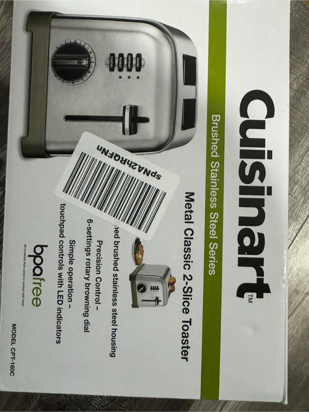 This Cuisinart Metal Classic 2-Slice Toaster features brushed stainless steel housing. It has touchpad controls with LED indicators and a 6-setting rotary browning dial. The toaster slots are 1 1/4" wide.