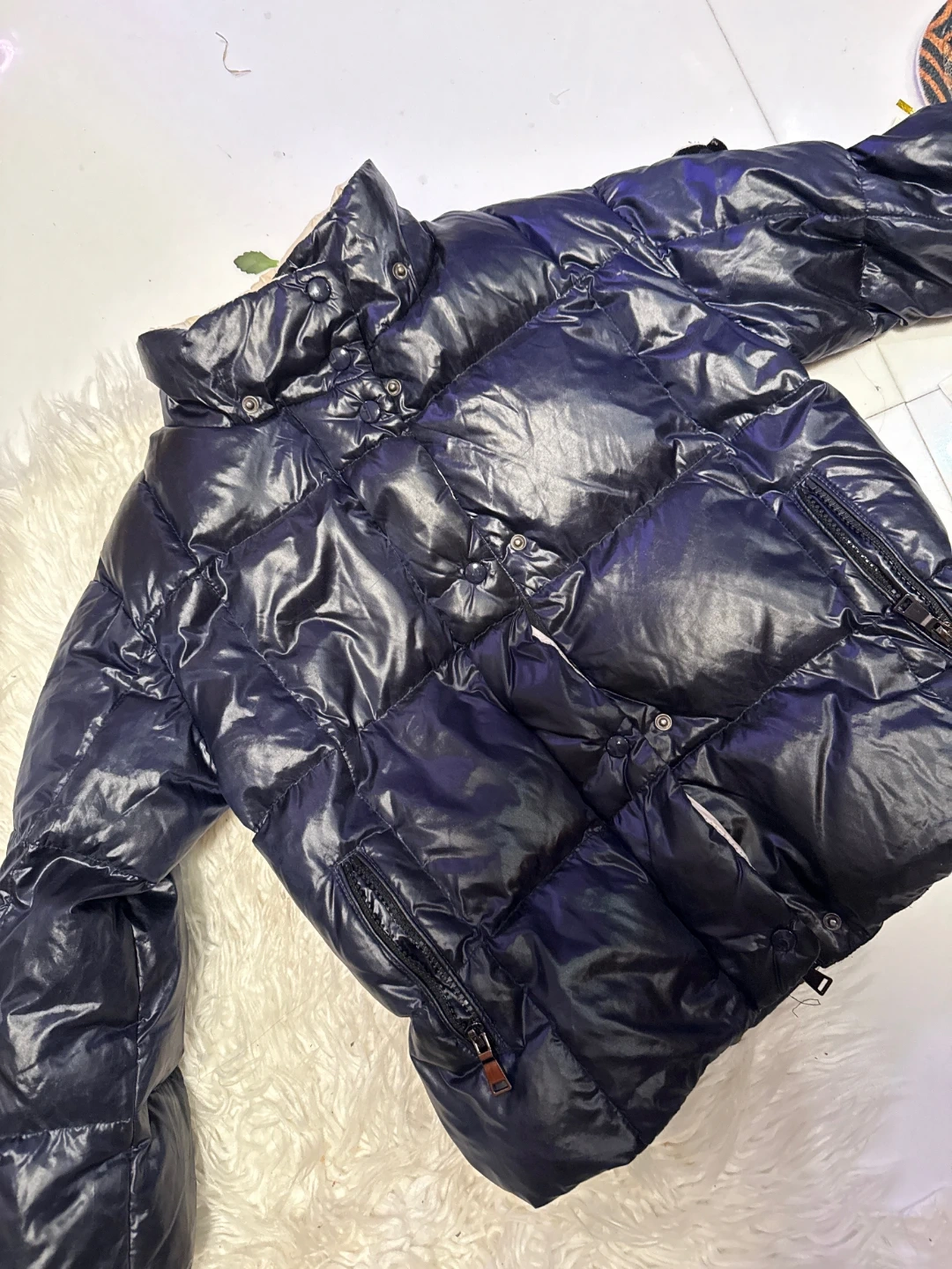 A stylish Moncler padded down jacket in great condition. This jacket is perfect for staying warm and looking fashionable during the colder months. It features a sleek design and high-quality materials, ensuring both comfort and durability. Has a logo on the sleeve.