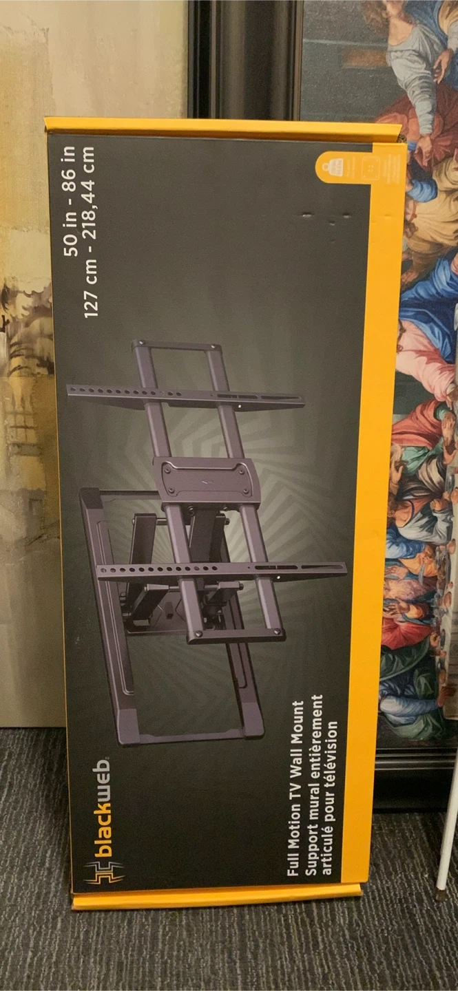 Selling a Blackweb full motion TV wall mount! It supports TVs from 50 inches to 86 inches (127 cm - 218.44 cm). It is new in box!