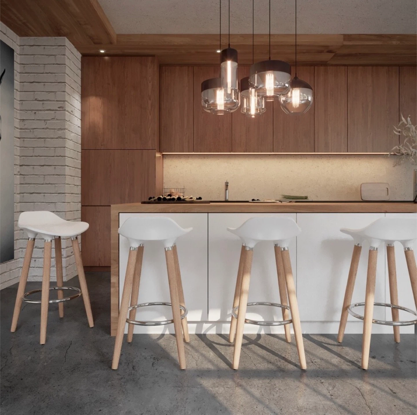 * Features: Counter-height, PP seat, wooden legs, minimalist design, armless, easy assembly