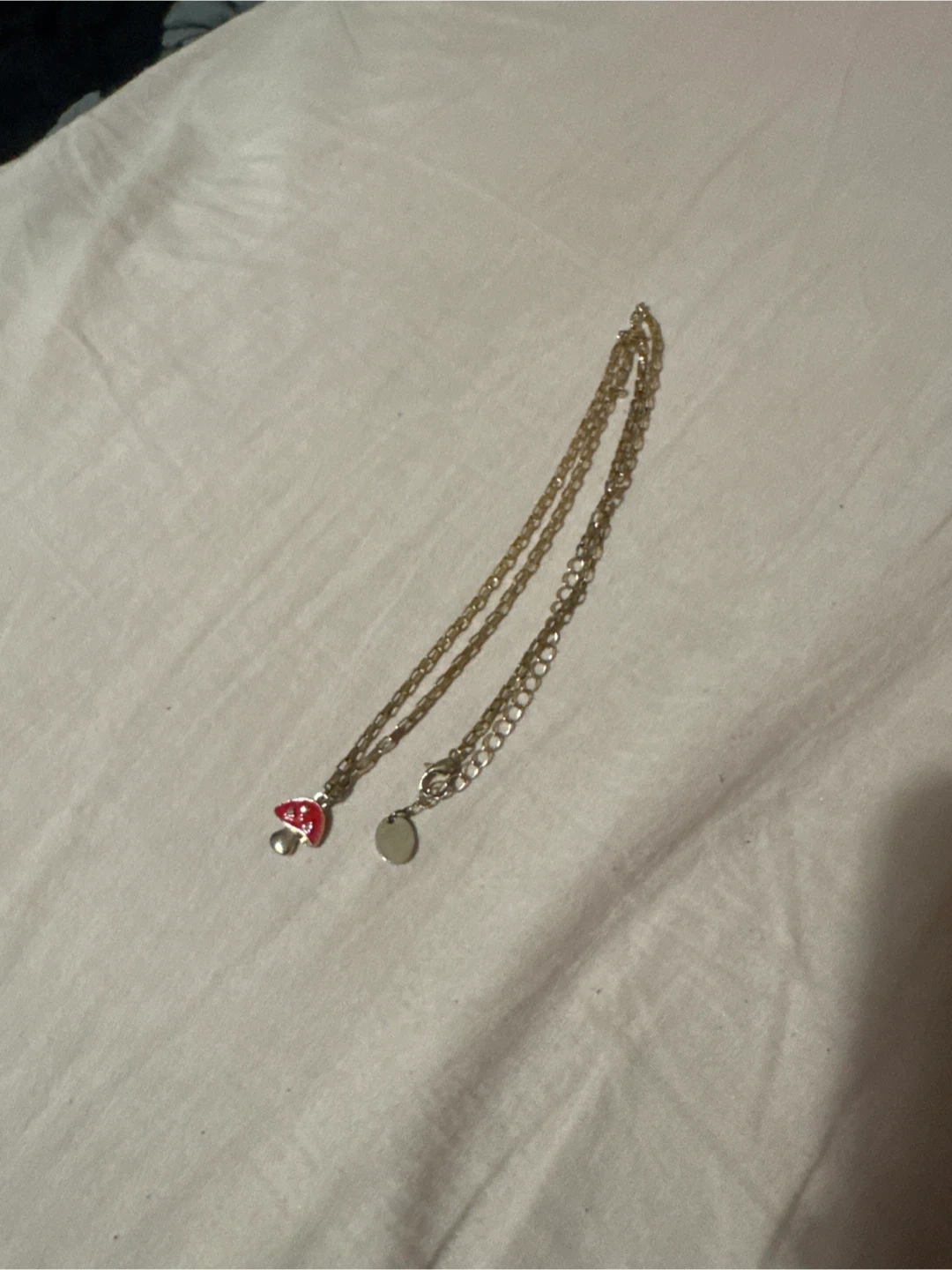 Selling a lot of costume jewellery. Includes a mushroom pendant necklace, a black heart ring, a clear beaded bracelet with a daisy charm, and a purple beaded bracelet with a Eiffel Tower charm