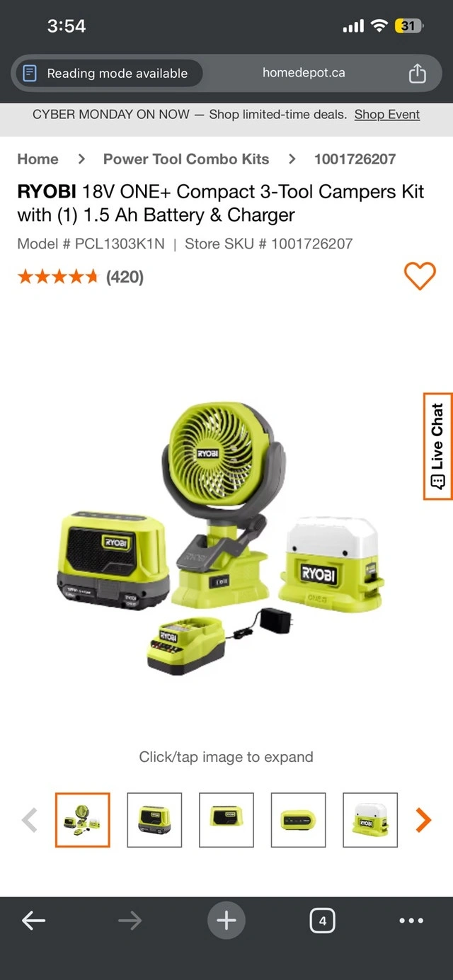 Buy & SellRYOBI 18V ONE+ Compact 3-Tool Kit w/ 1.5 Ah BattRYOBI 18V ONE+ Compact 3-Tool Kit w/ 1.5 Ah Batt$160Brand new, sealed box. Originally $300 in store.WHERE TO MEETCheck LocationView MapSELLERMikeGrimsby605 reviews0 chats·1 favorites·13 viewsSEND CHAT TO SELLERHi Mike! I’m interested in your listing.Hi Mike! I’m interested in your listing.Get the Karrot app to chatSign In to chat