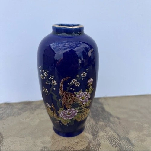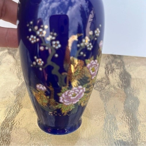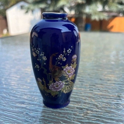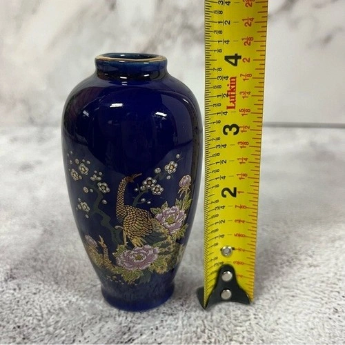 Approx 4" tall. Made in Japan. In excellent condition - no chips, scratches or cracks. Handcrafted vase. The pattern is Imperial Peacock in a Cherry tree. Do not have original box.
