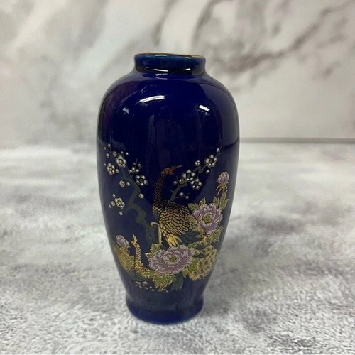 Approx 4" tall. Made in Japan. In excellent condition - no chips, scratches or cracks. Handcrafted vase. The pattern is Imperial Peacock in a Cherry tree. Do not have original box.