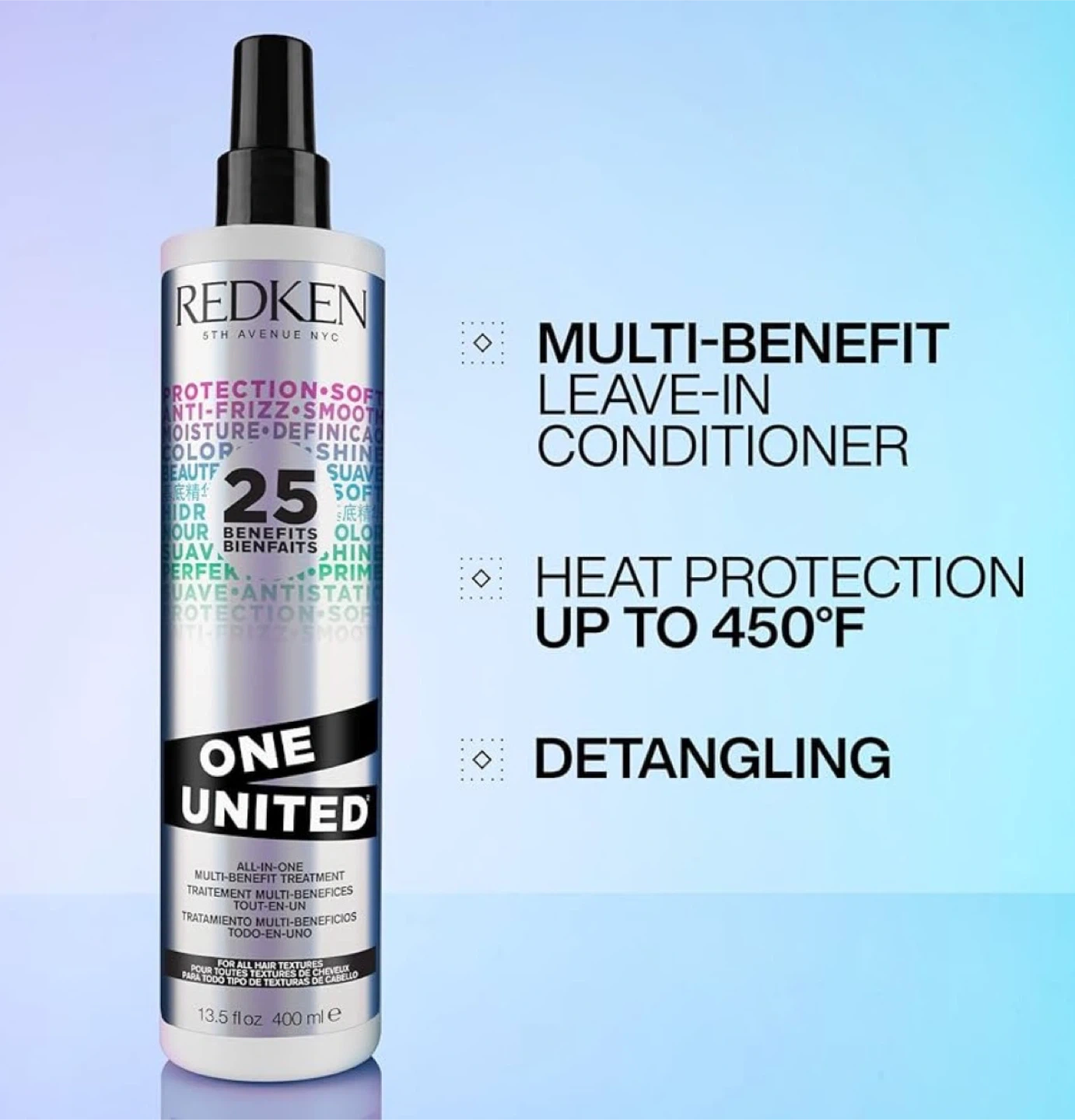 This multi-benefit leave-in conditioner delivers 25 benefits in one spray, including: