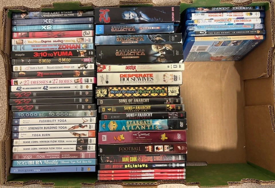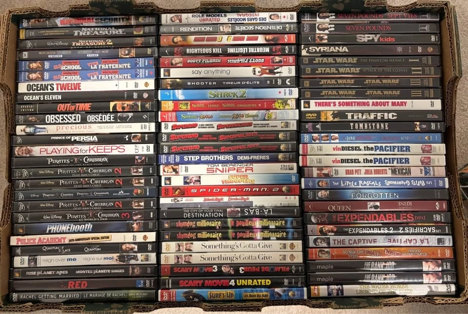 Selling a large collection of well-maintained DVDs, VHS tapes, and Blu-rays from our personal collection. We have a wide variety of genres including Comedy, Action, Drama, Horror, Sci-Fi, Family, Kids, Franchise Series, and TV Series. All movies are in great condition with no playback issues.