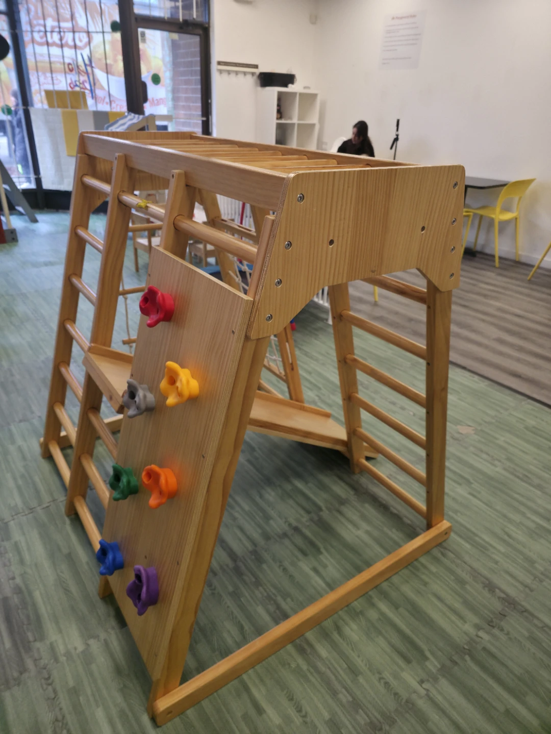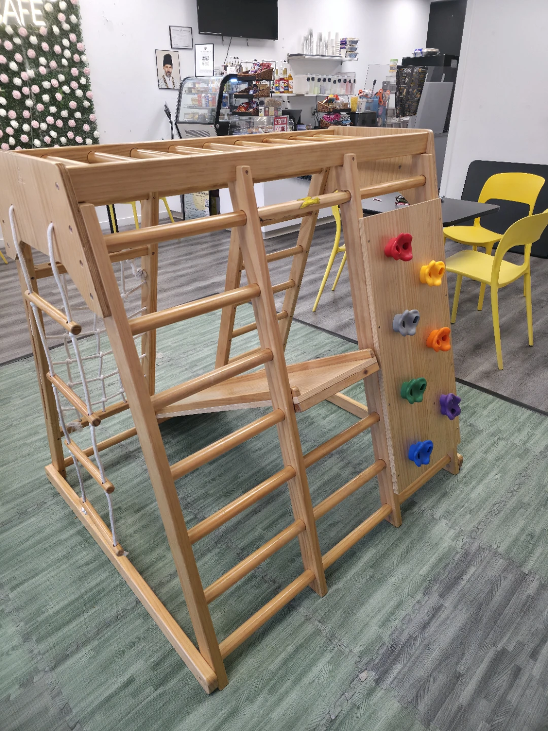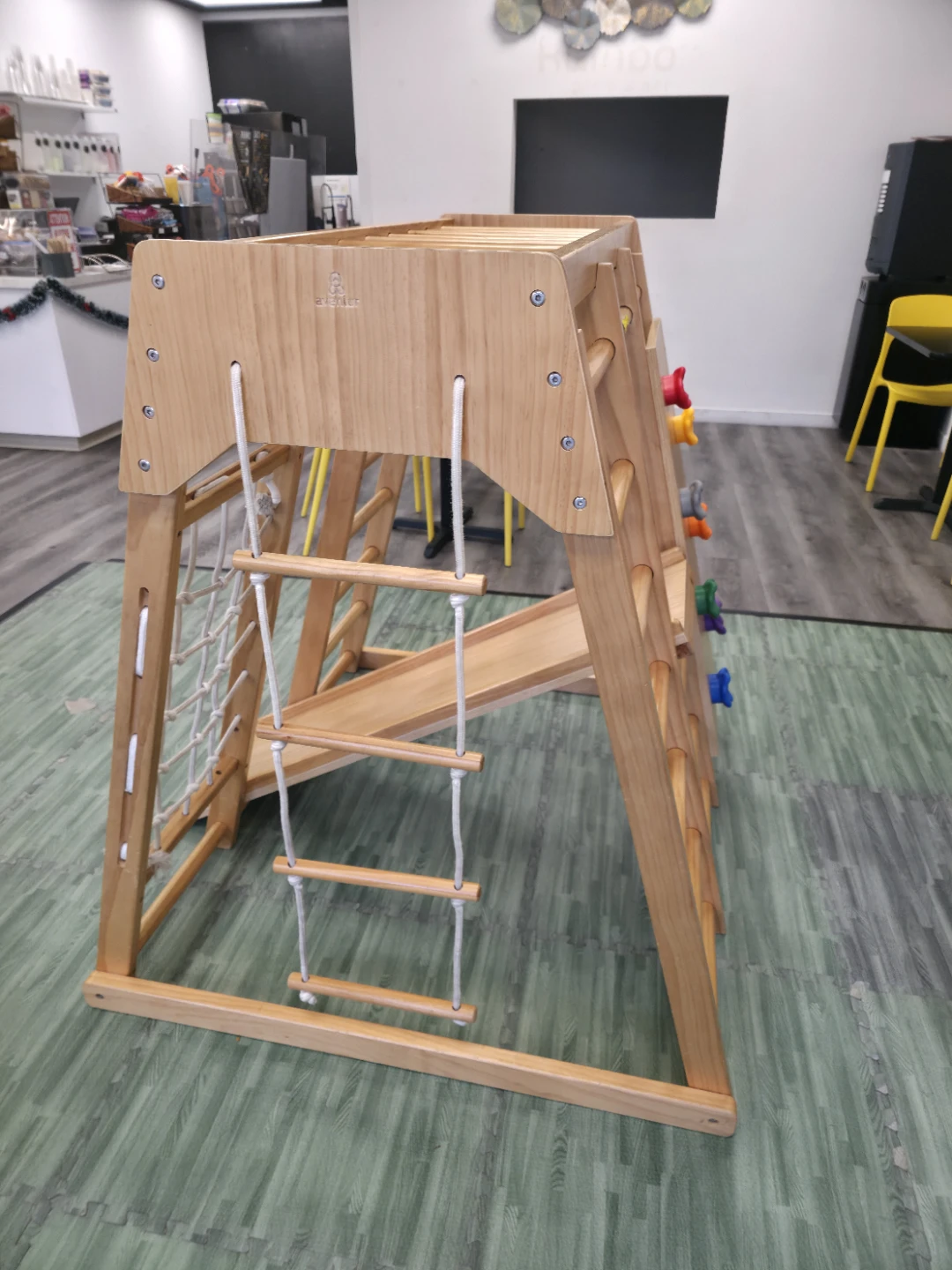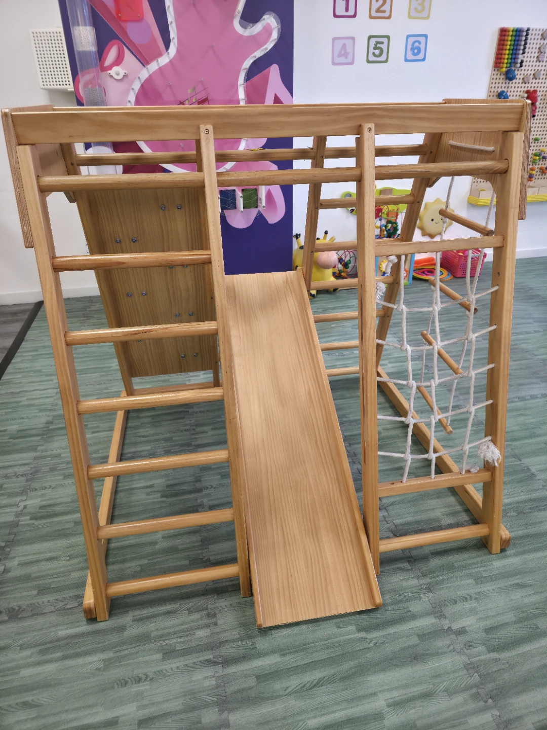 It's in great condition and provides hours of fun and active play for little ones. This set includes a ladder, slide, climbing wall, and net, perfect for developing motor skills and coordination.