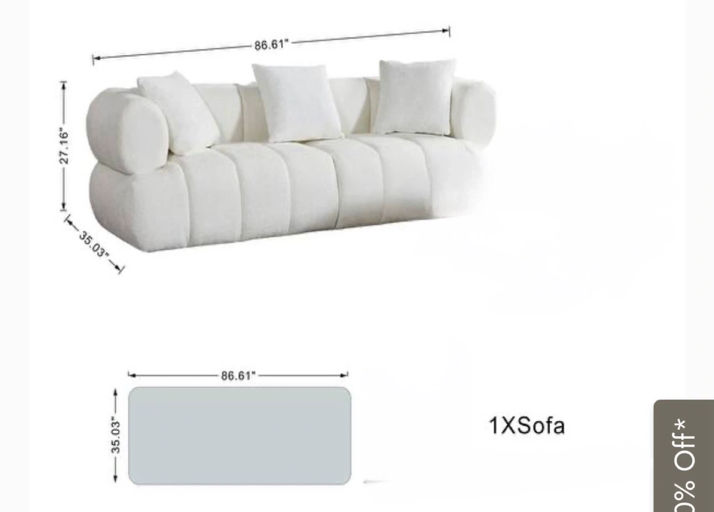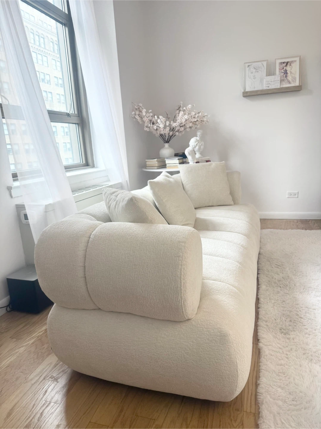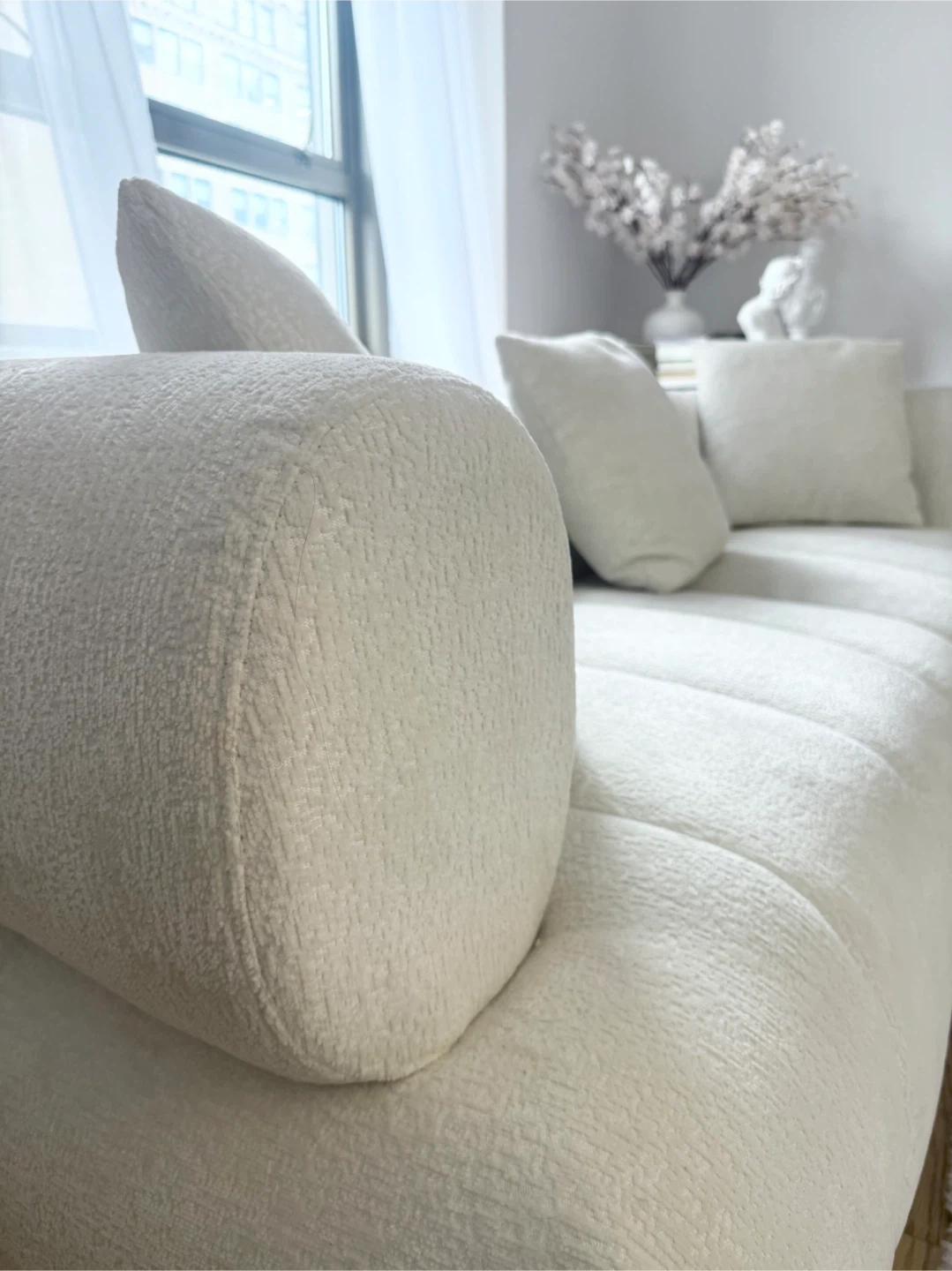 White Boucle Sofa - 86.61" W x 35.03" D