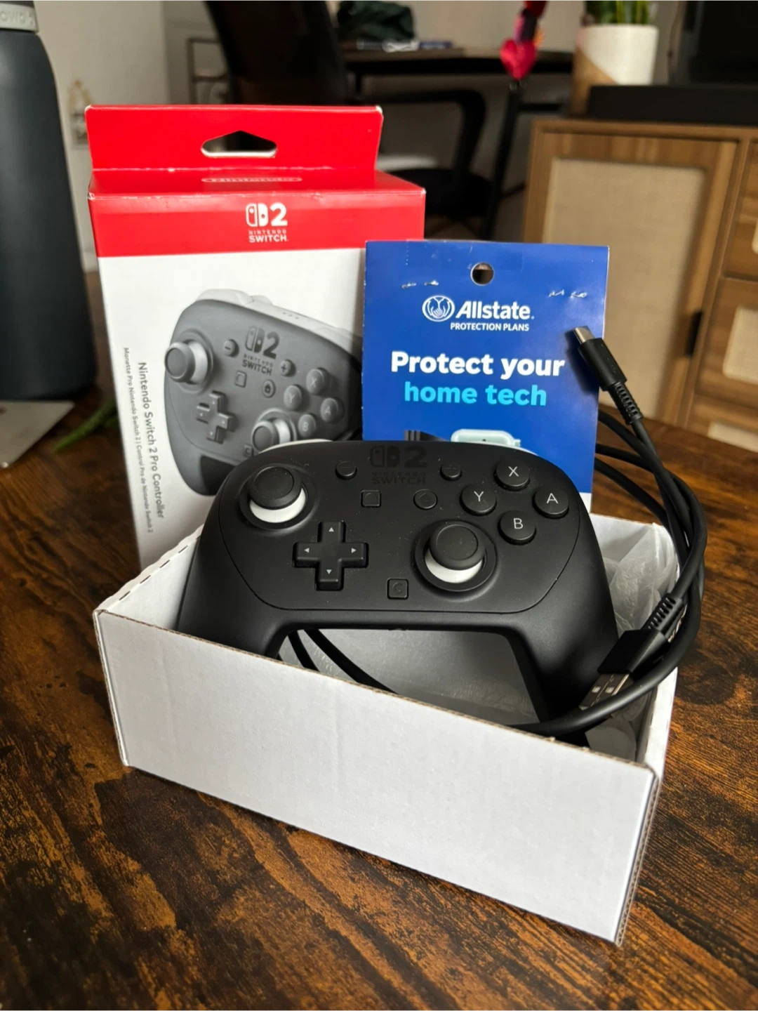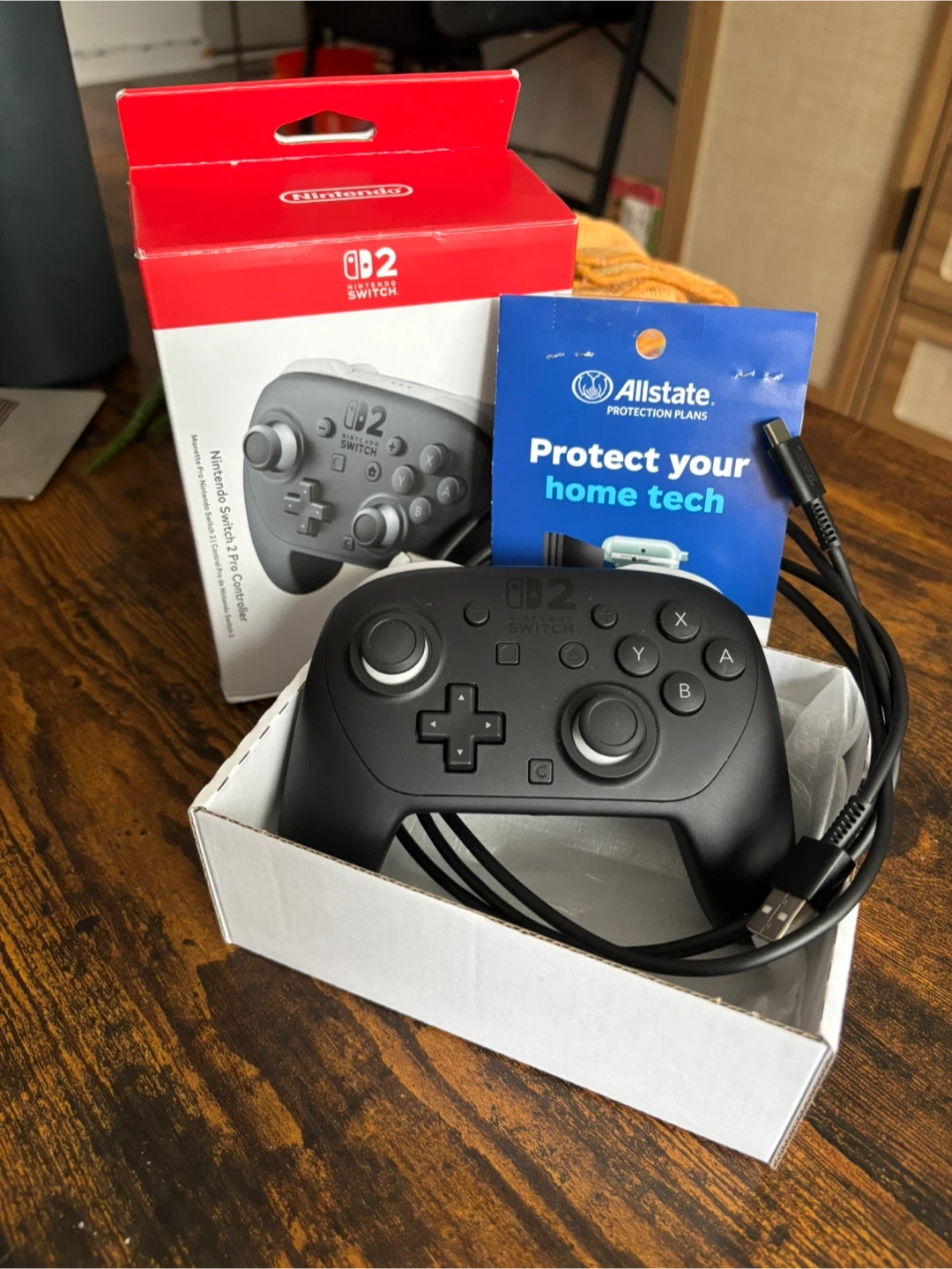 This is a Nintendo Switch 2 Pro Controller in black. It includes the controller and a USB-A to USB-C charging cable. The original box is also included.