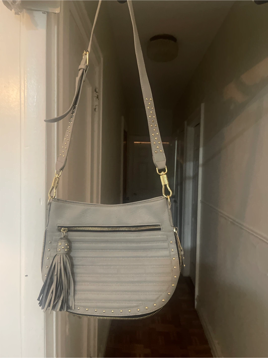 I'm selling a Steve Madden handbag in a lovely grey color! It's in great condition and ready for a new owner. It's perfect for everyday use or a night out