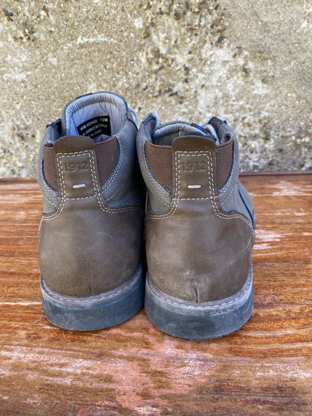 Step out in style with these used Nunn Bush men's boots, size 12M. Crafted with all-man-made materials and a unique 1912 design on the heel, these boots have a great look for casual wear. Brand: Nunn Bush, Size: 12M, Material: All man-made materials, Style: Boots. If the ad is up, they're still available!