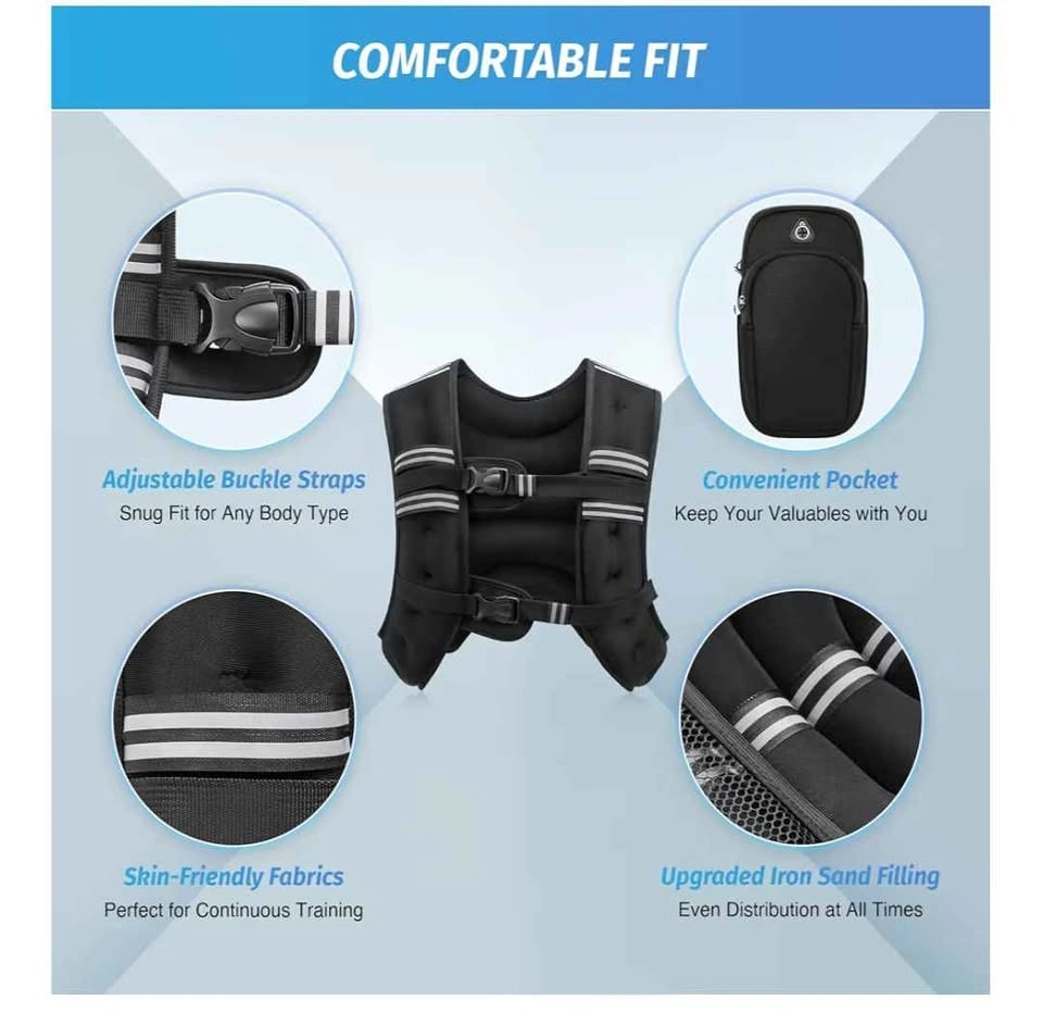 Brand new 30lb adjustable weighted vest for your workouts. Has buckle straps for snug fit on different body types. Comes with a convenient pocket to hold your phone or keys. Made with skin-friendly fabric and upgraded iron sand filling for even weight distribution.