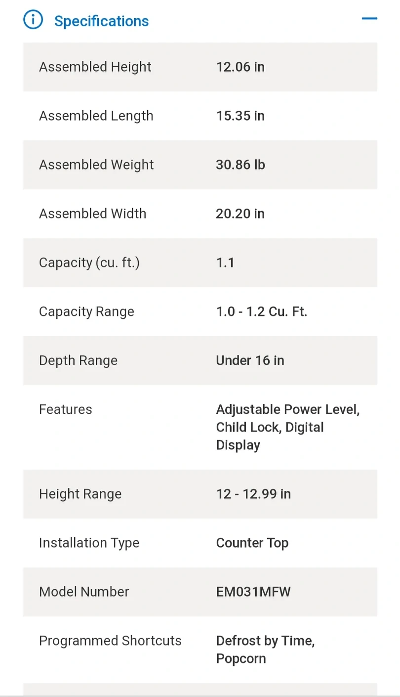 Features: Adjustable power level, child lock, digital display, digital touchpad control