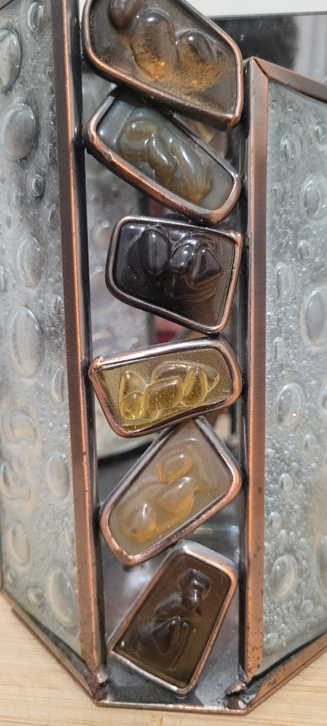 Vintage candel holder thingy, very unique and give off a sick vibe. Mirror from behind the glass amplifies the light alot