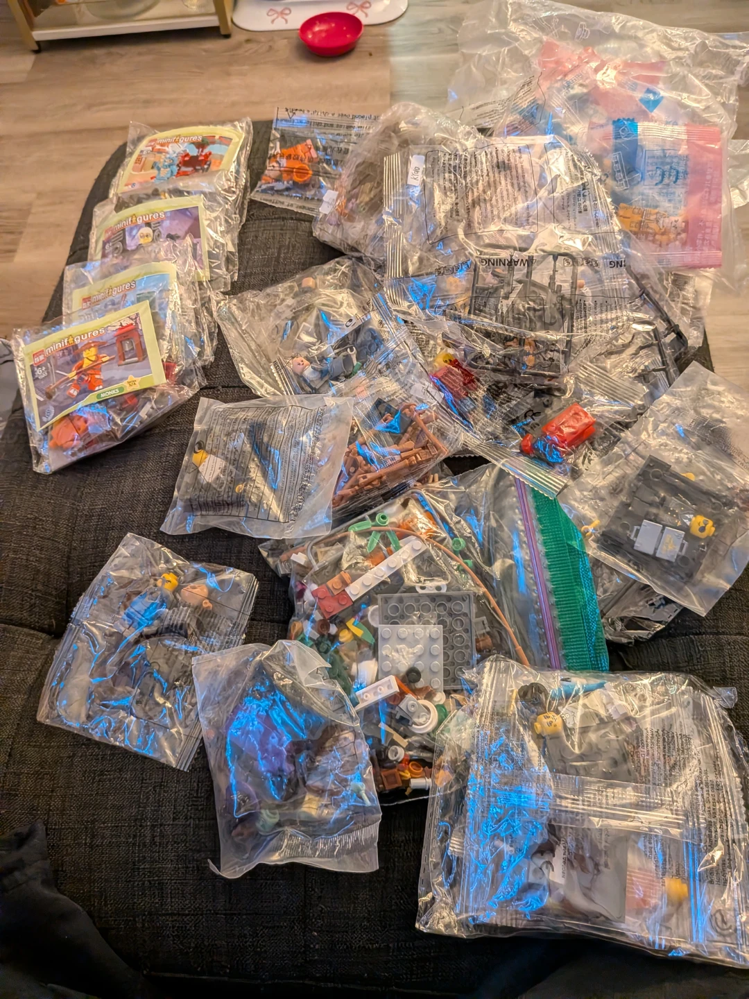 Bag Full of Lego characters and Lego Brick Yard