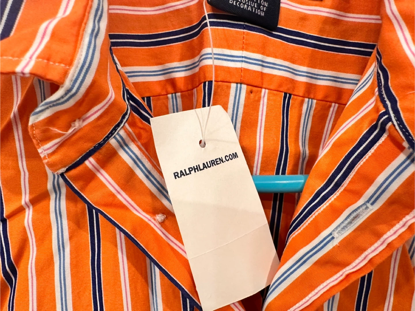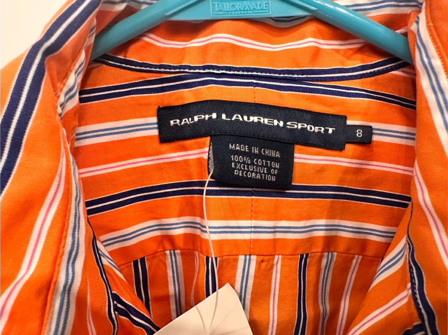 Ralph Lauren Sport Orange Striped Button-Up Shirt - Size 8