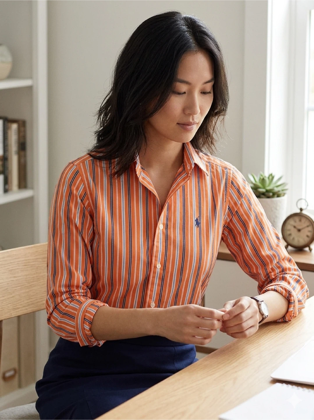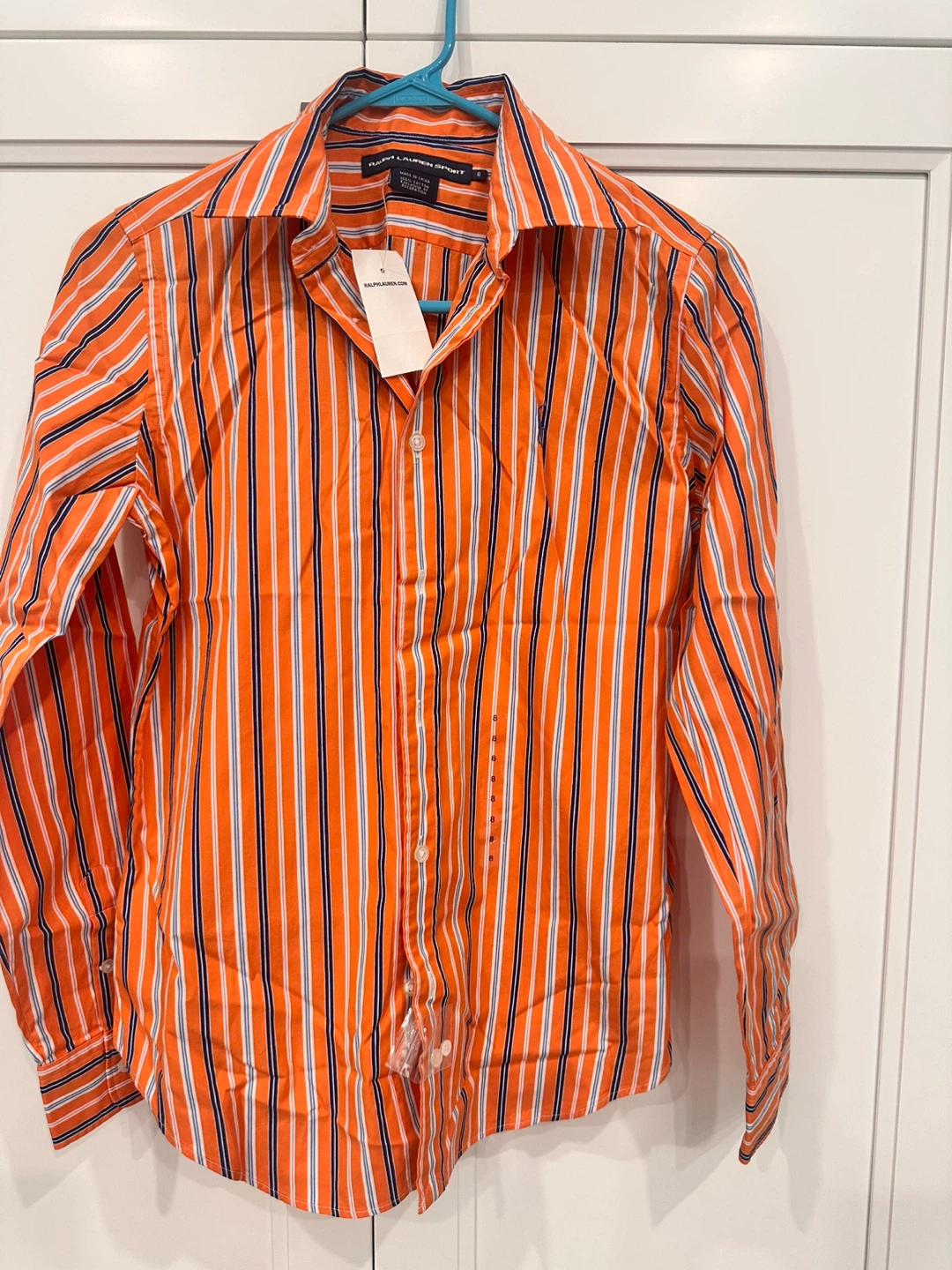 Ralph Lauren Sport Orange Striped Button-Up Shirt - Size 8