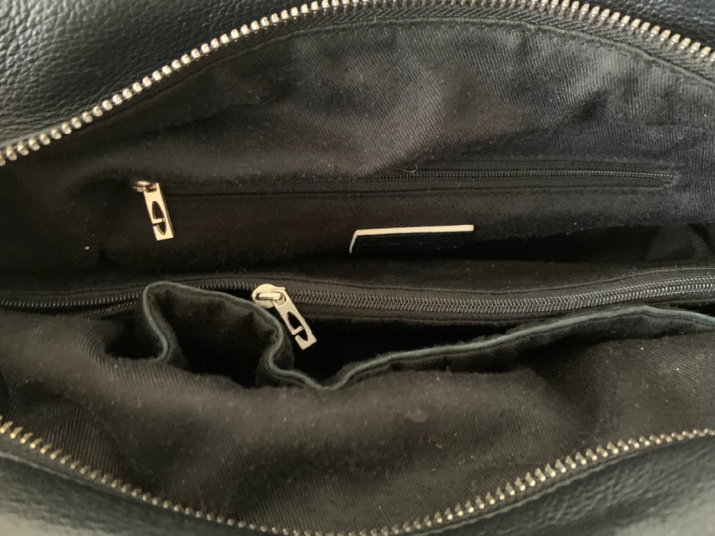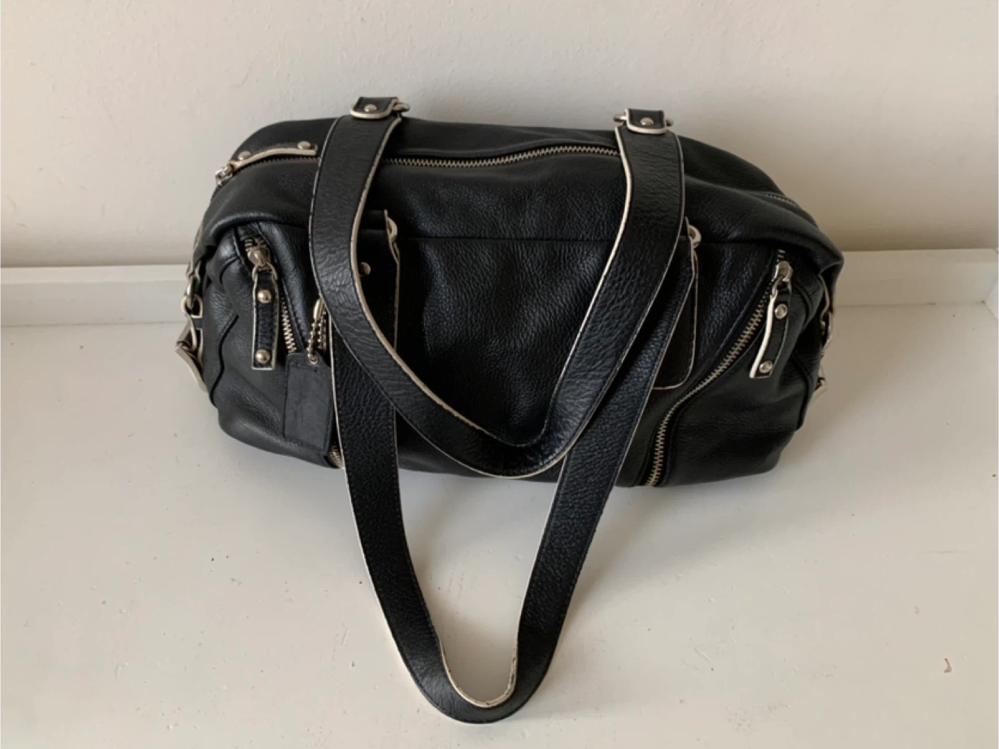 Selling a black leather satchel. It is in good condition. The bag has a zipper closure and multiple pockets inside. Perfect for everyday use!