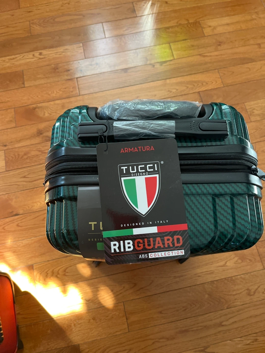 This is a TUCCI Ribguard ABS Collection piece of luggage. It's designed in Italy and comes with a 10-year warranty. The ABS collection offers durability for your travels. Great for weekend trips!