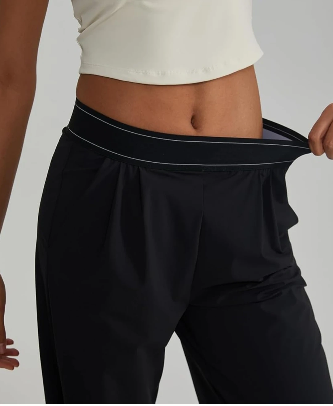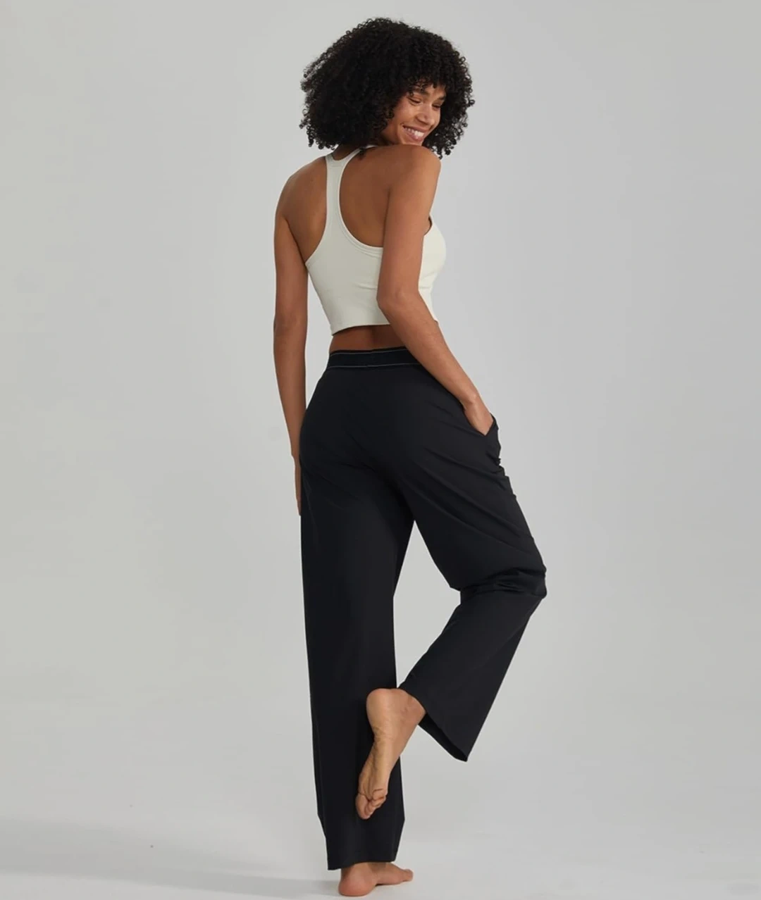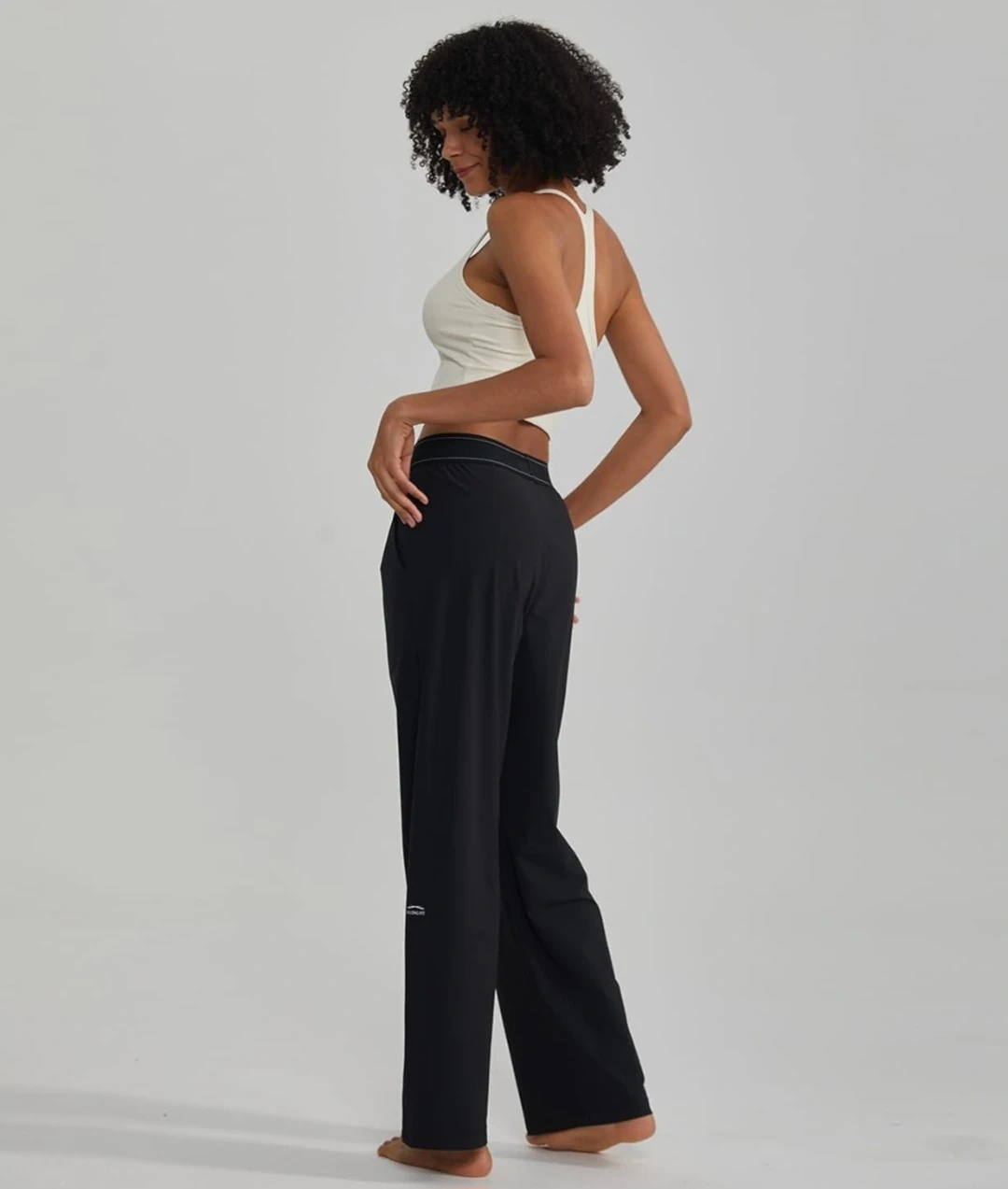Small-ALONG FIT Womens Lightweight Wide Leg Sweatpants, Casual Lounge Pants Cooling Drape Loose Fit Pants with Pockets Summer