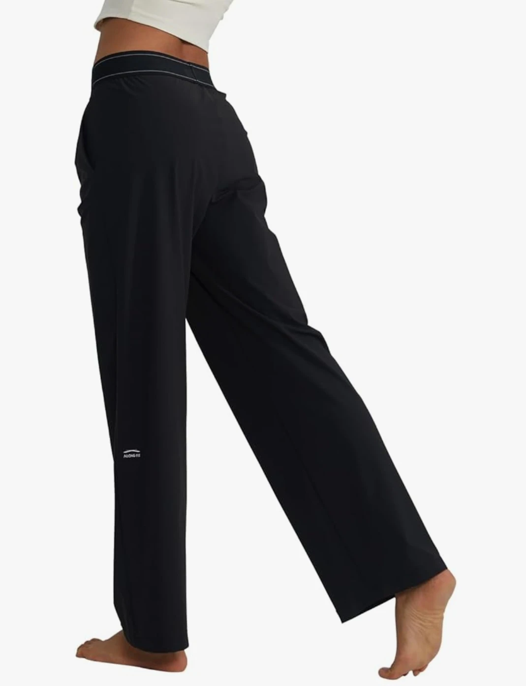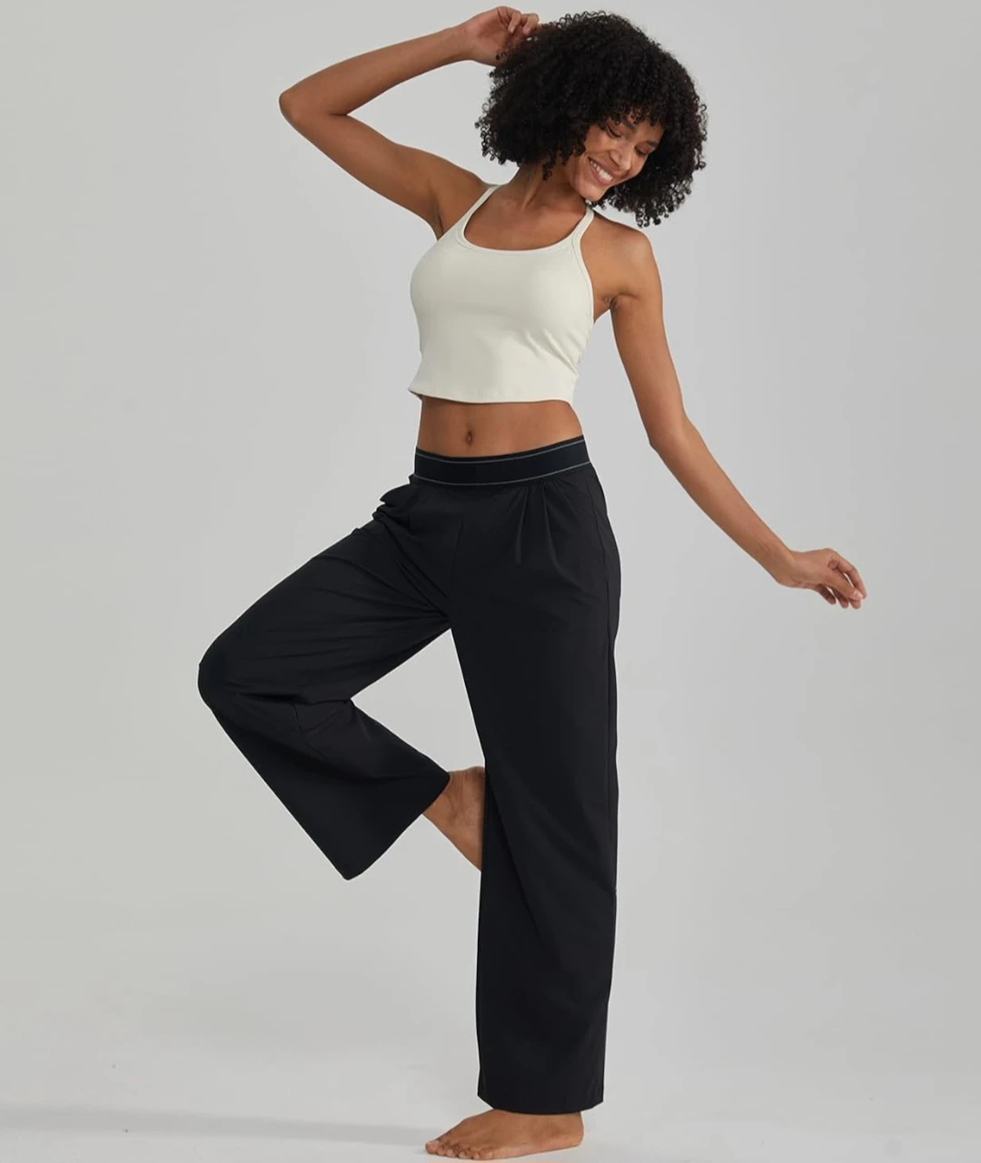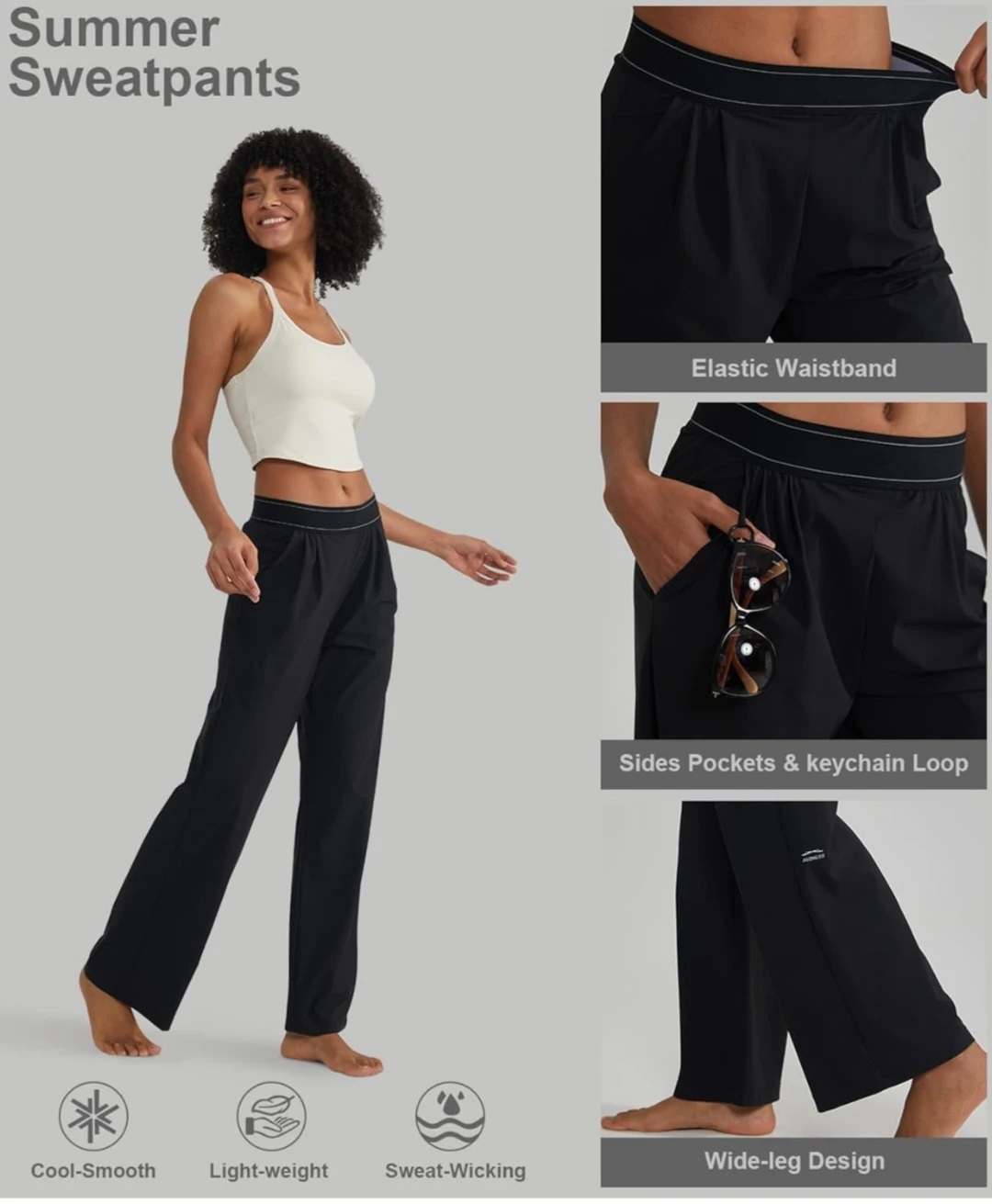 Small-ALONG FIT Womens Lightweight Wide Leg Sweatpants, Casual Lounge Pants Cooling Drape Loose Fit Pants with Pockets Summer